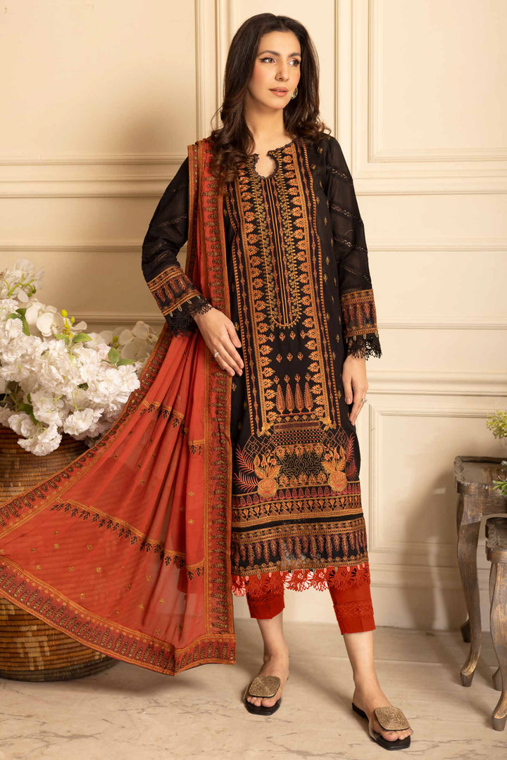 Description: Embroidered Swiss With Embroidered Voile Chiffon Dupatta