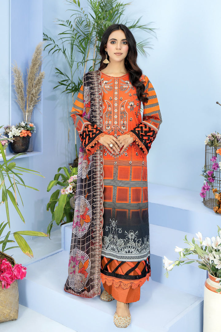 Stuff: Embroidered Digital Print Lawn Shirt with Embroidered Digital Printed Chiffon Dupatta