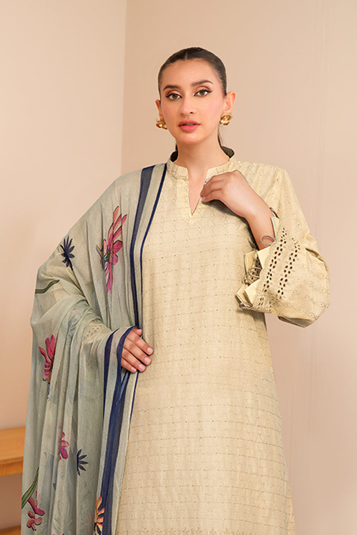 Chikankari Lawn With Printed Bamber Chiffon Dupatta