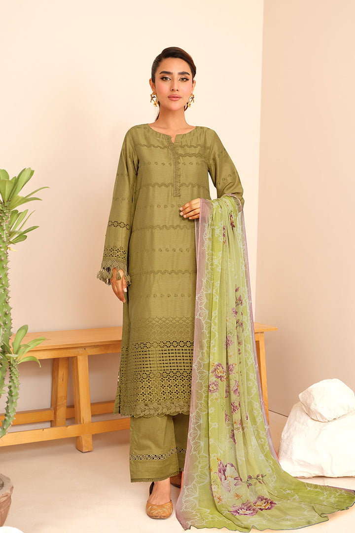 Chikankari Lawn With Printed Bamber Chiffon Dupatta