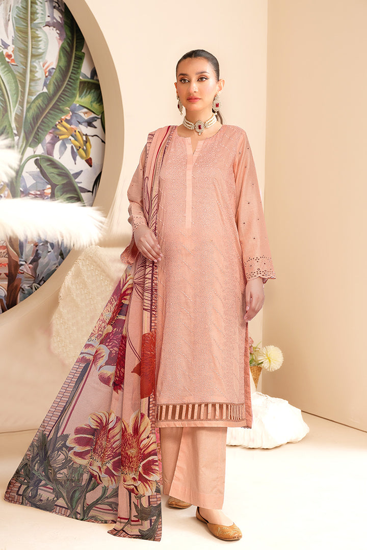 Chikankari Lawn With Printed Bamber Chiffon Dupatta