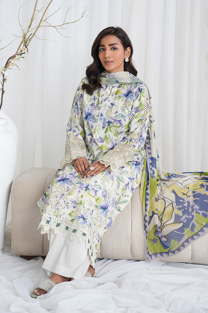 Chikankari + Printed Lawn With Printed Bamber Chiffon Dupatta
