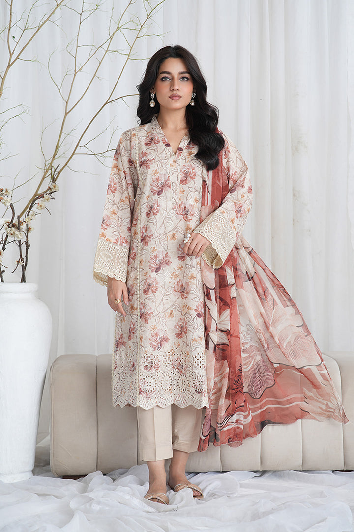 Chikankari + Printed Lawn With Printed Bamber Chiffon Dupatta
