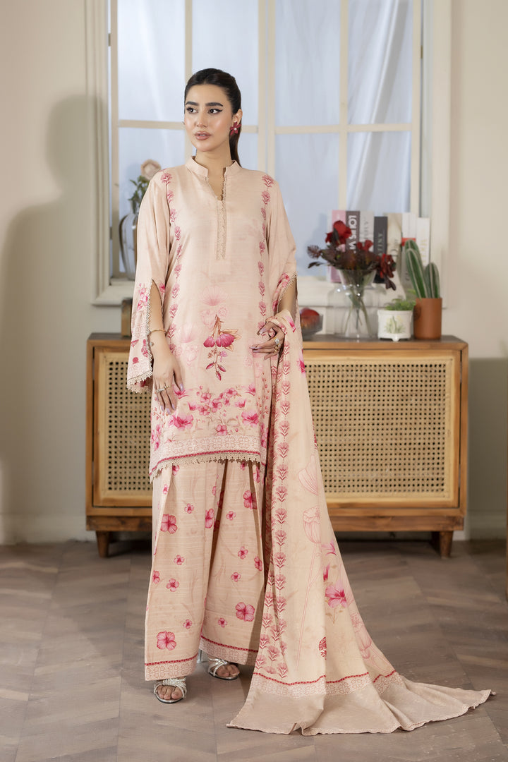 Description: Printed Peach Leather with Printed Wool Shawl + Printed Trouser