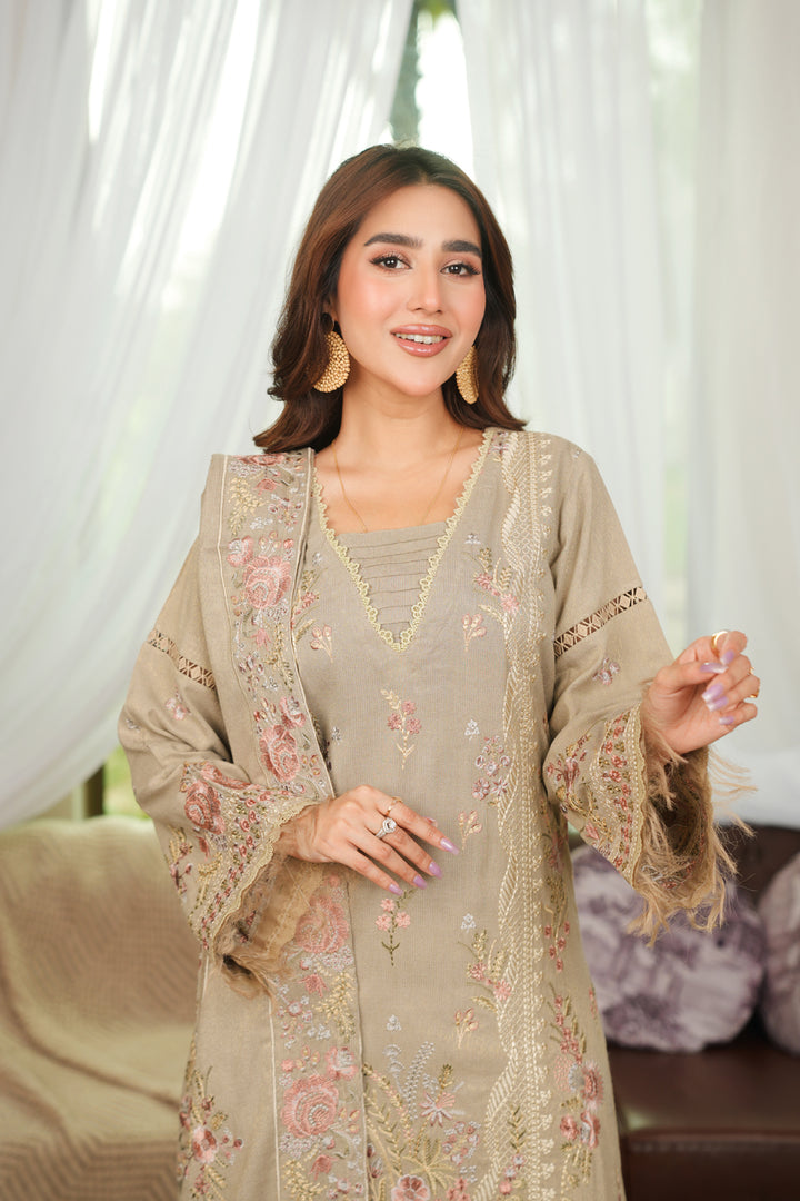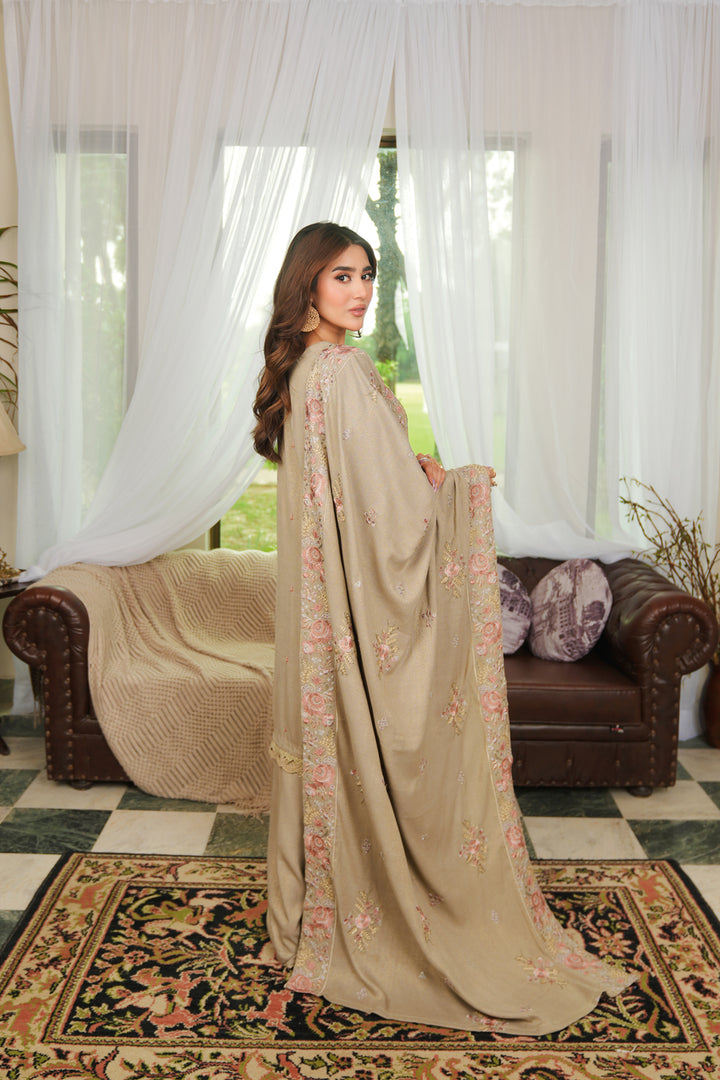 Description: Embroidered Fancy Peach Leather With Embroidered Wool Shawl
