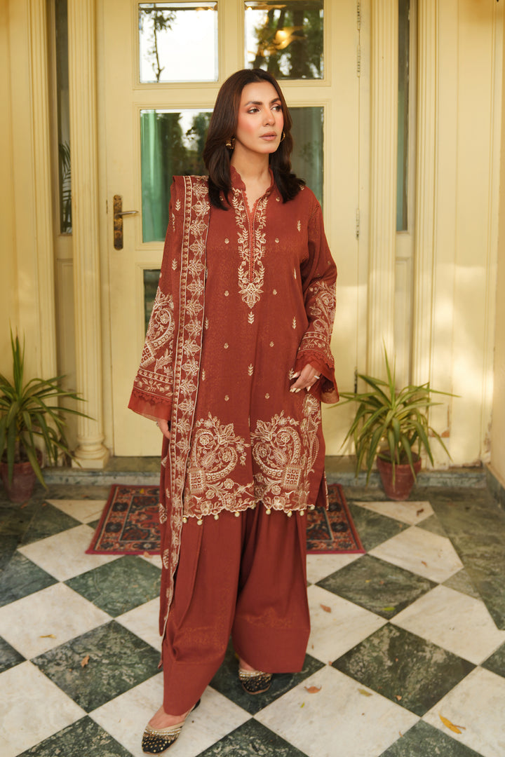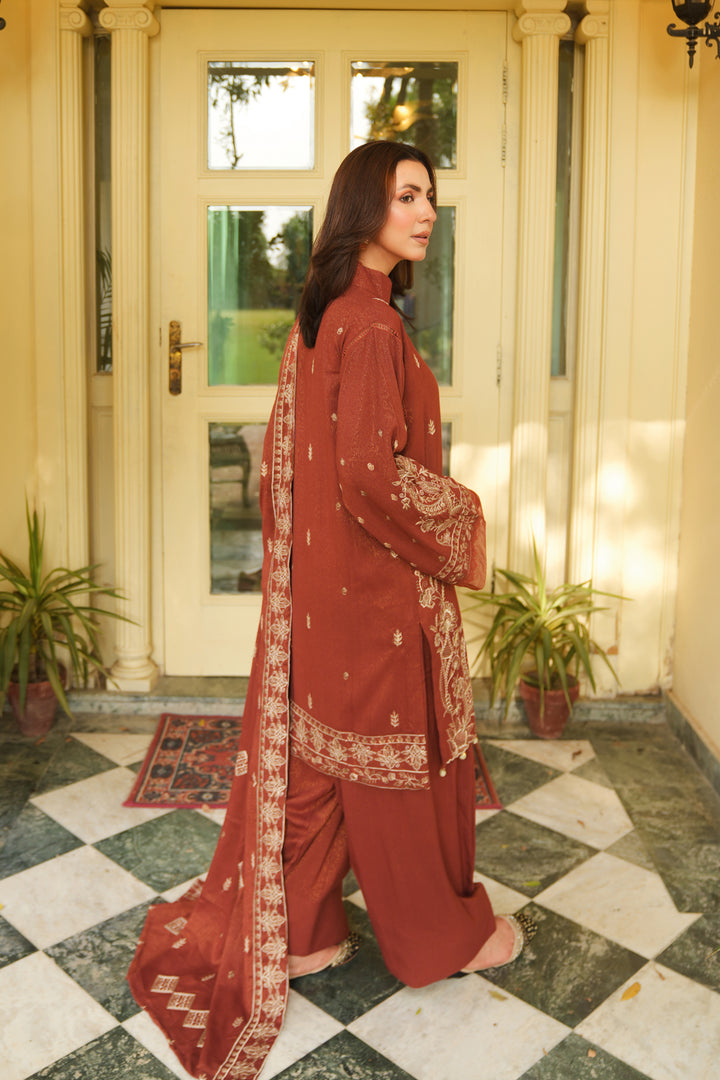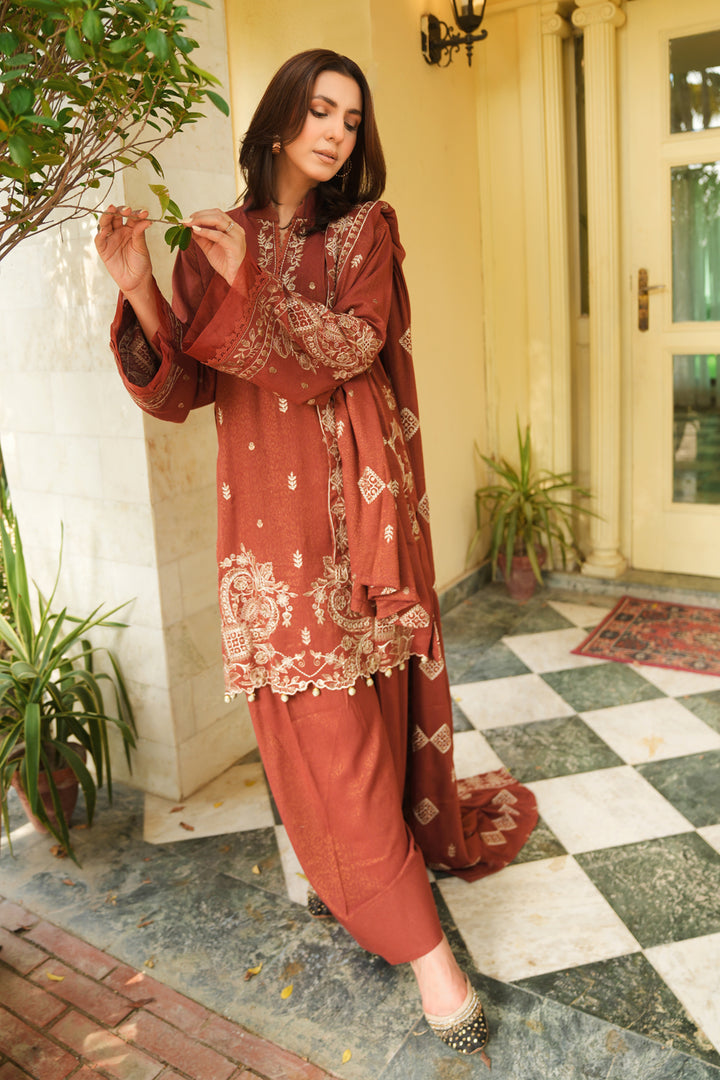 Description: Embroidered Fancy Peach Leather With Embroidered Wool Shawl