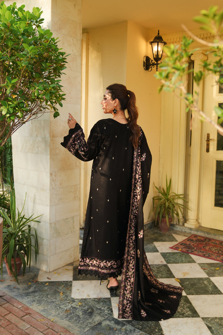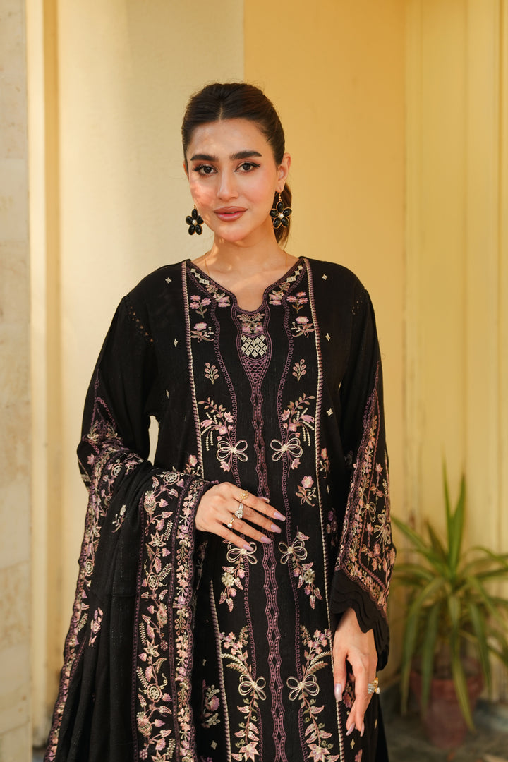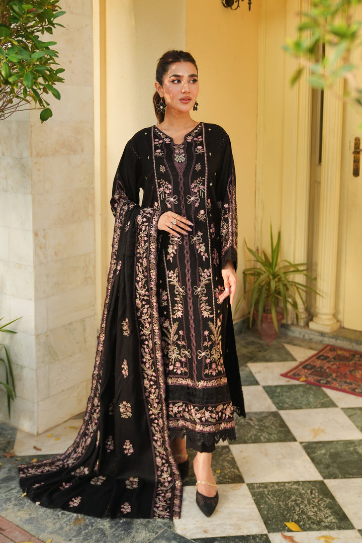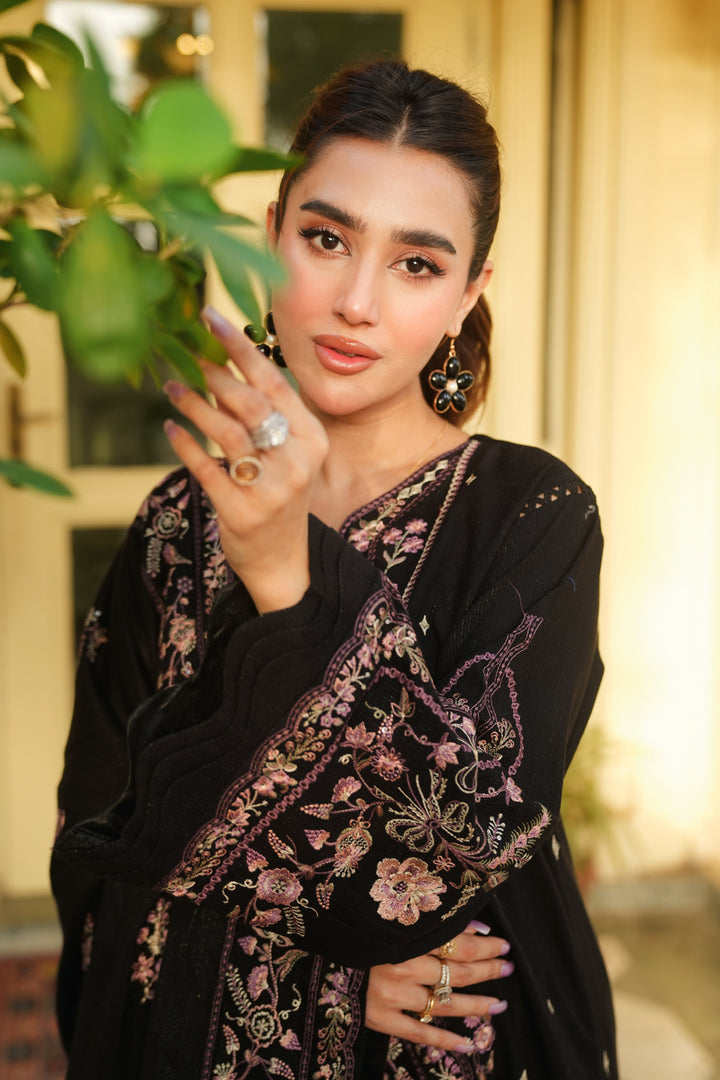 Description: Embroidered fancy peach leather with Embroidered wool shawl