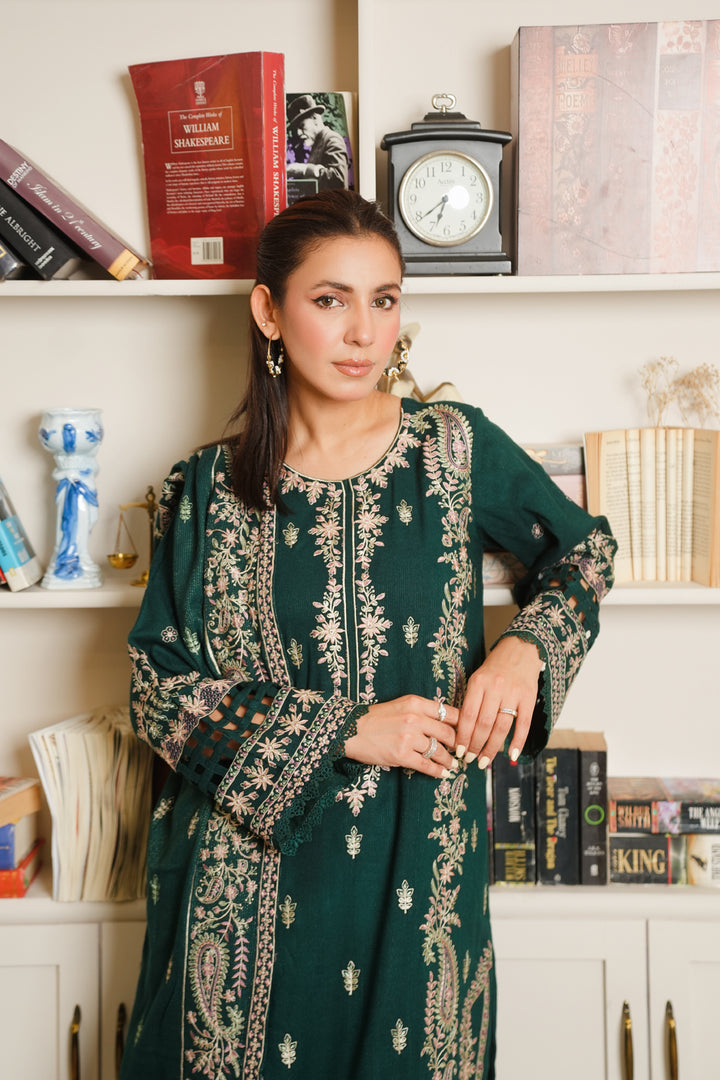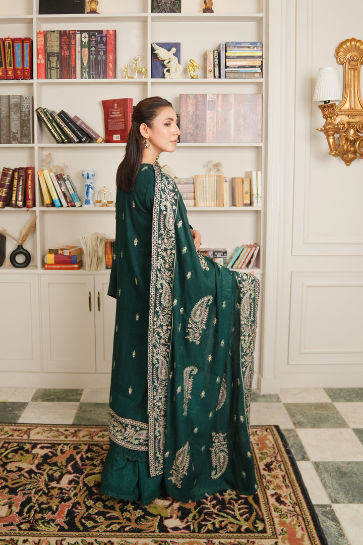 Description: Embroidered fancy peach leather with Embroidered wool shawl