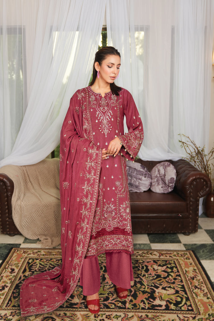 Description: Embroidered fancy peach leather with Embroidered wool shawl