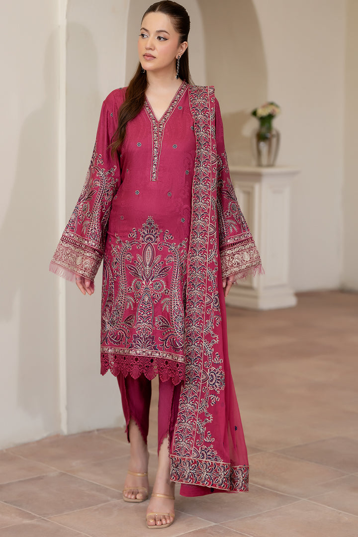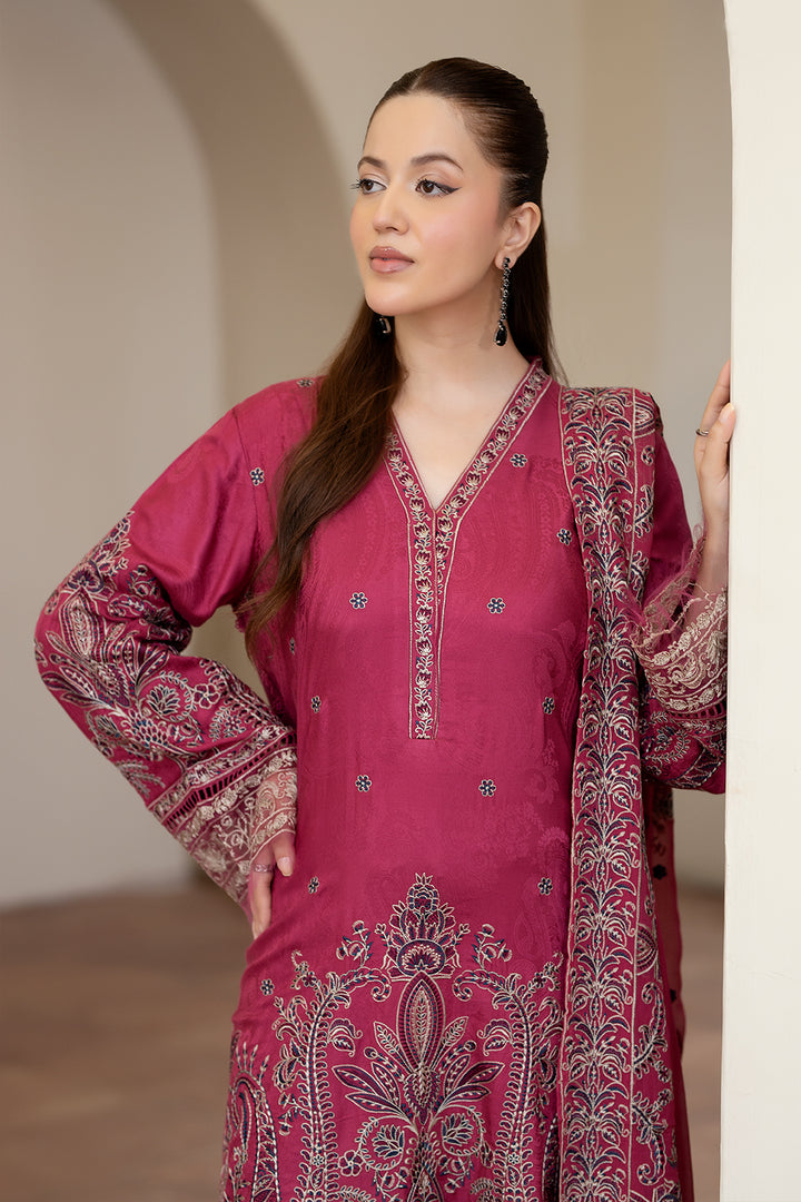 Description: Embroidered Viscose Stapple Jacquard With Embroidered Chiffon Dupatta