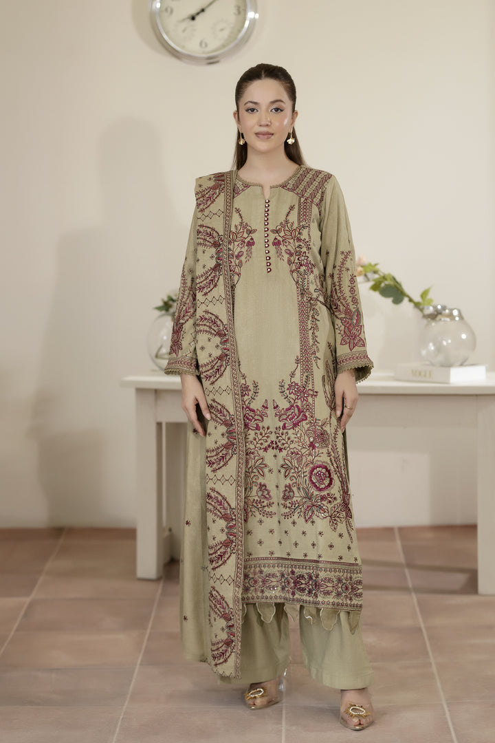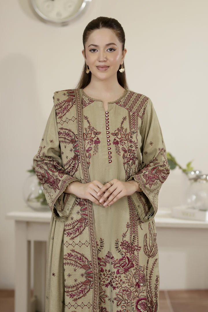 Description: Embroidered Fancy Peach Leather With Embroidered Wool Shawl