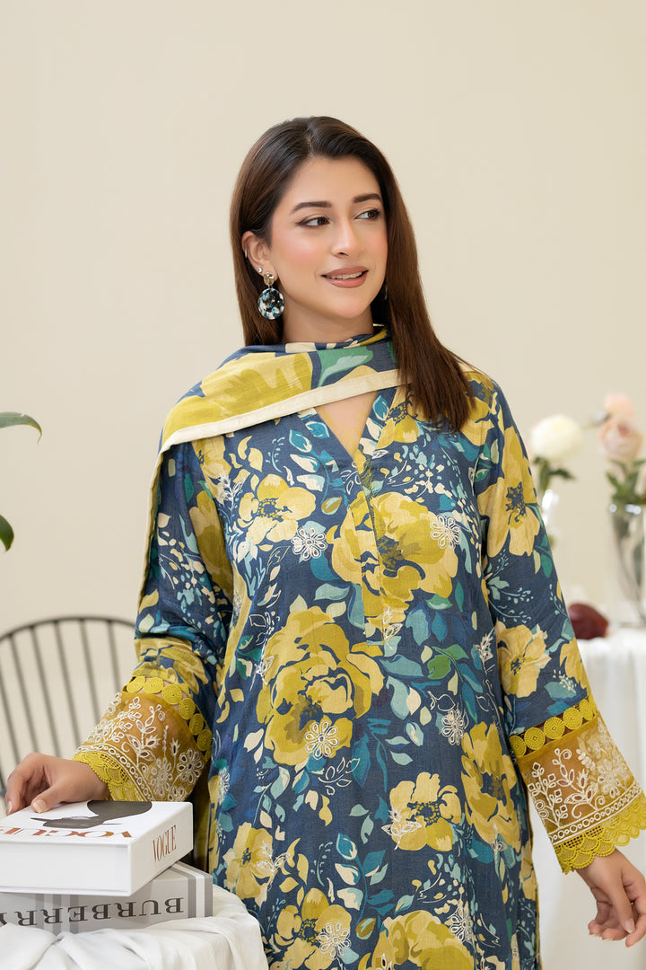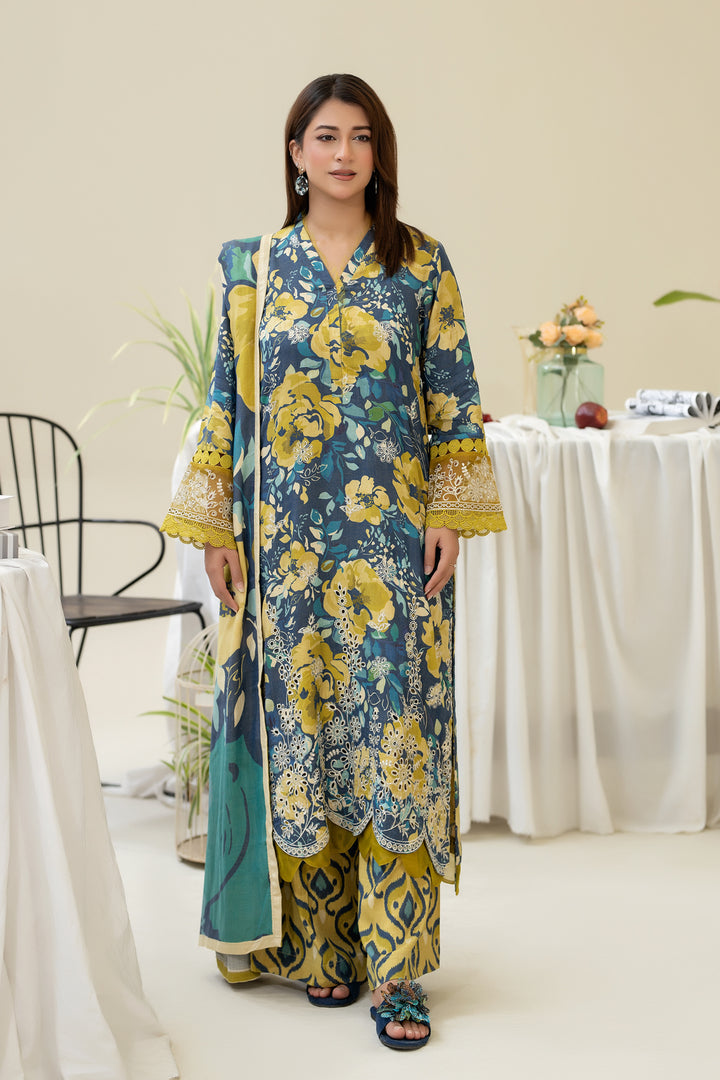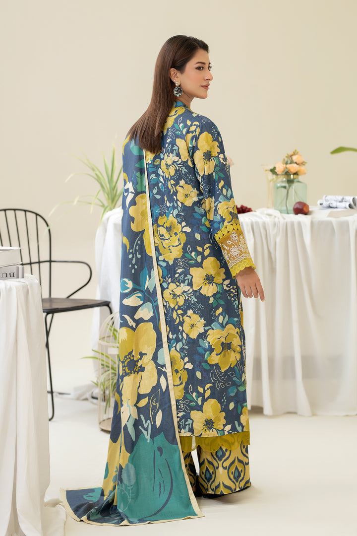 Description: EMBROIDERED+PRINTED STAPPLE JACQUARD WITH PRINTED SHAWL + PRINTED TROUSER