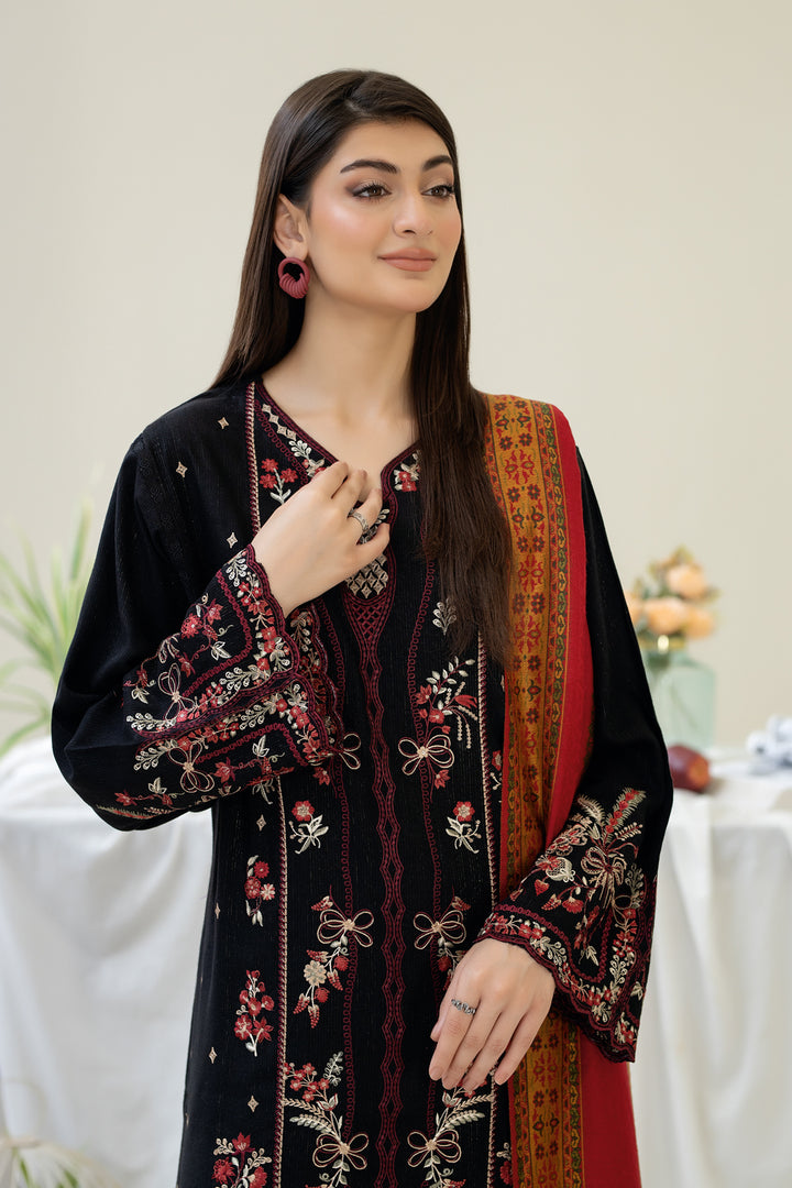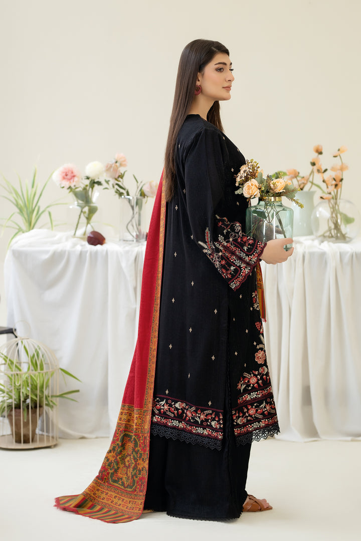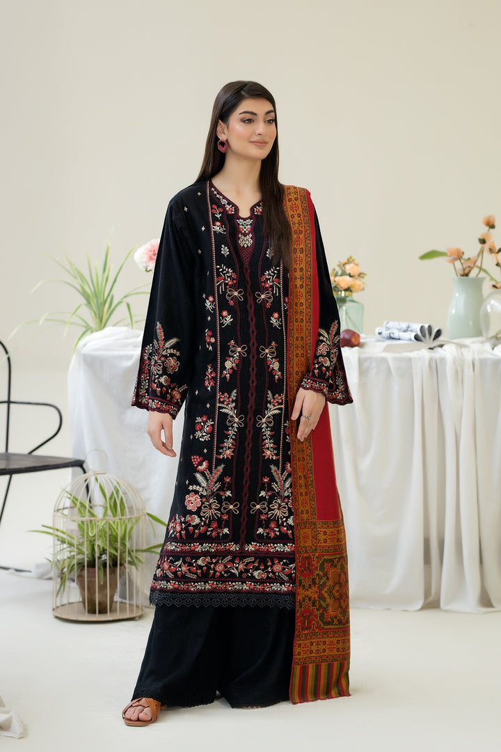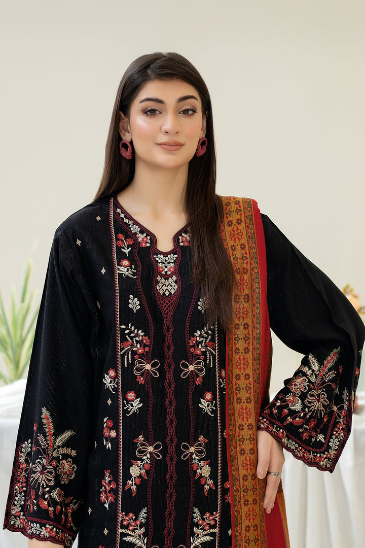 Description: Embroidered Fancy Peach Leather With Pure Wool Shawl