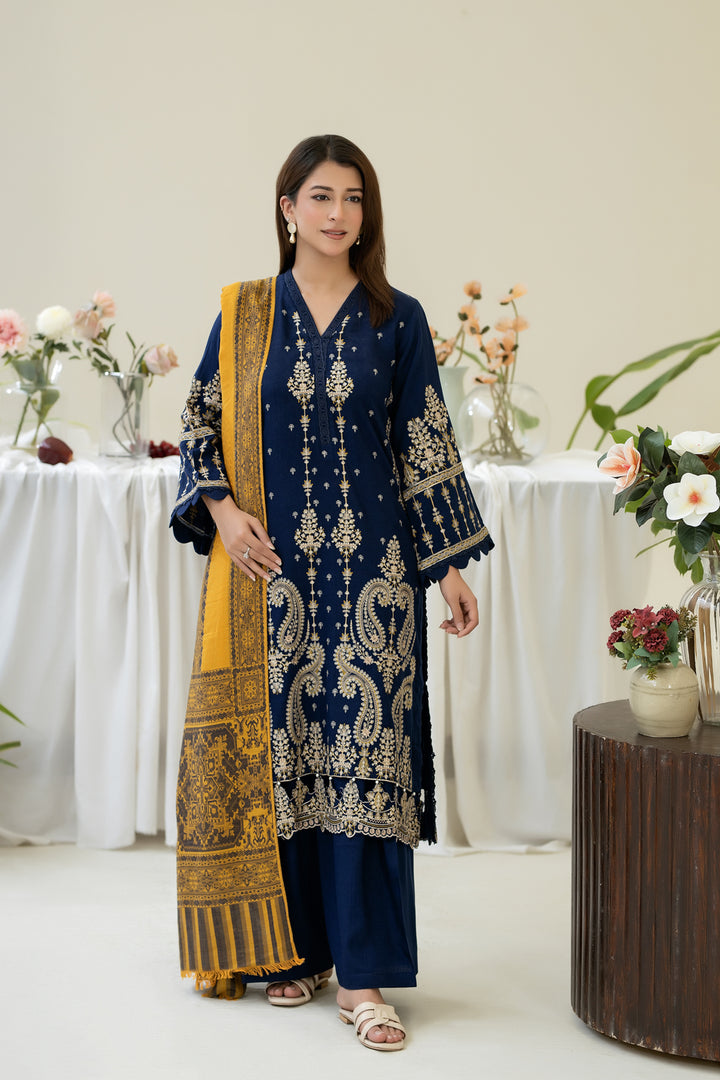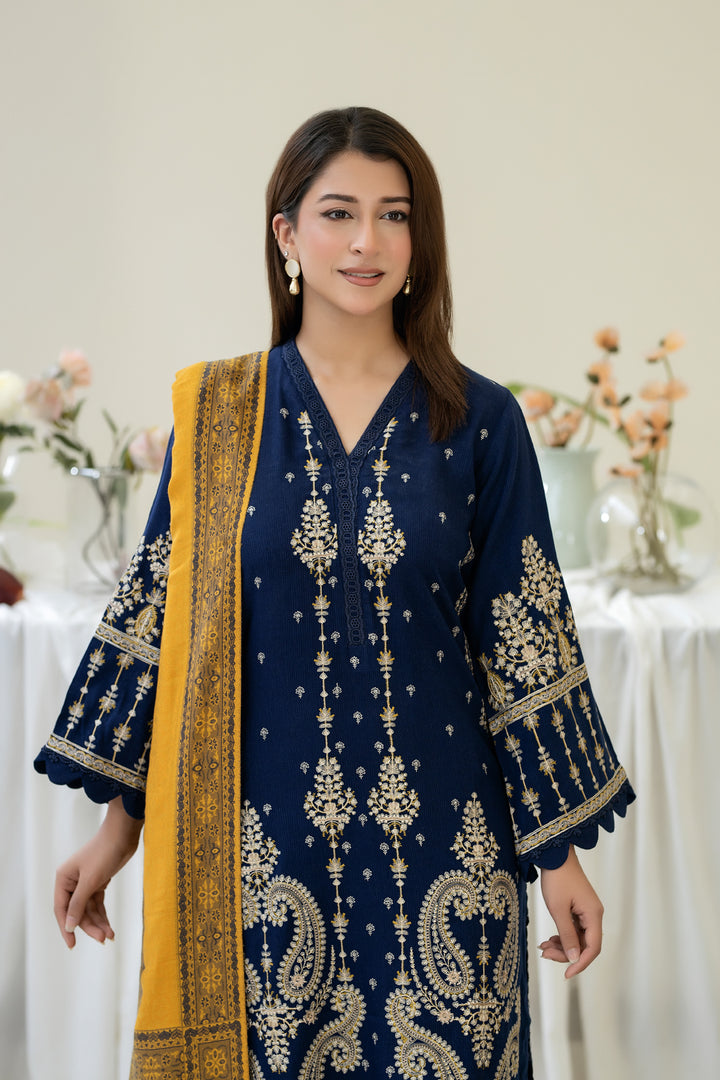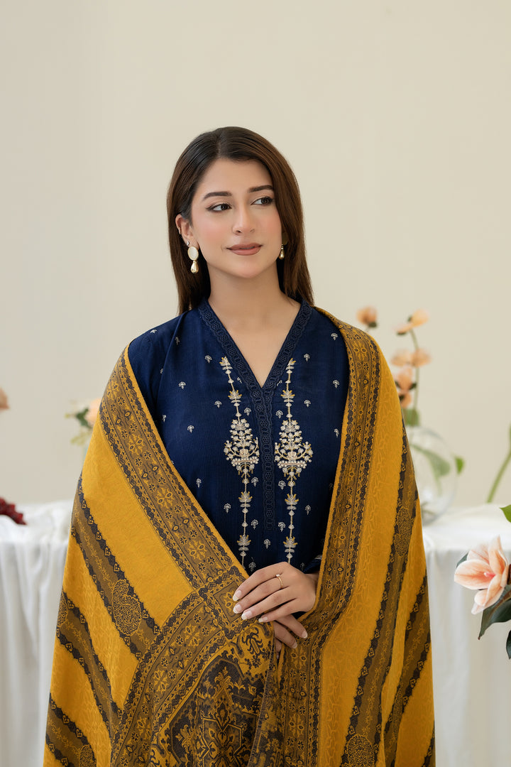 Description: Embroidered Fancy Peach Leather With Pure Wool Shawl