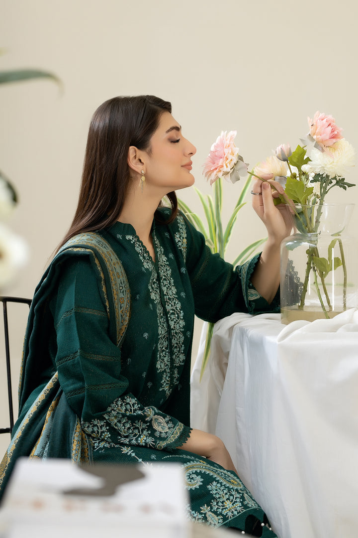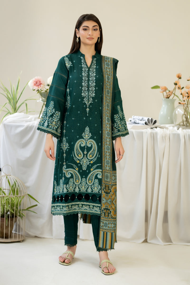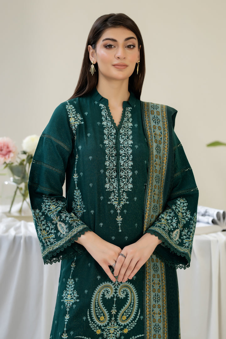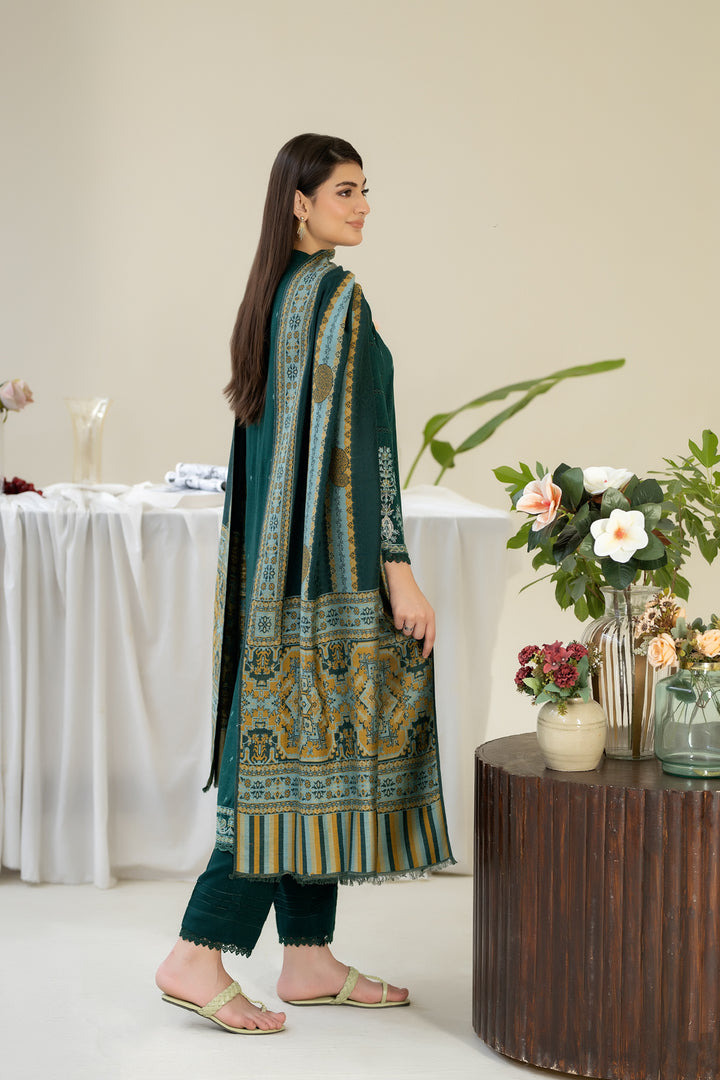 Description: Embroidered Fancy Peach Leather With Pure Wool Shawl
