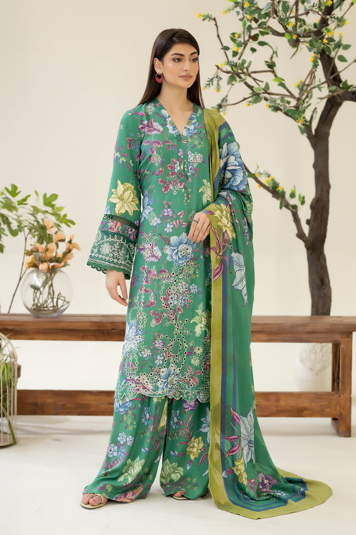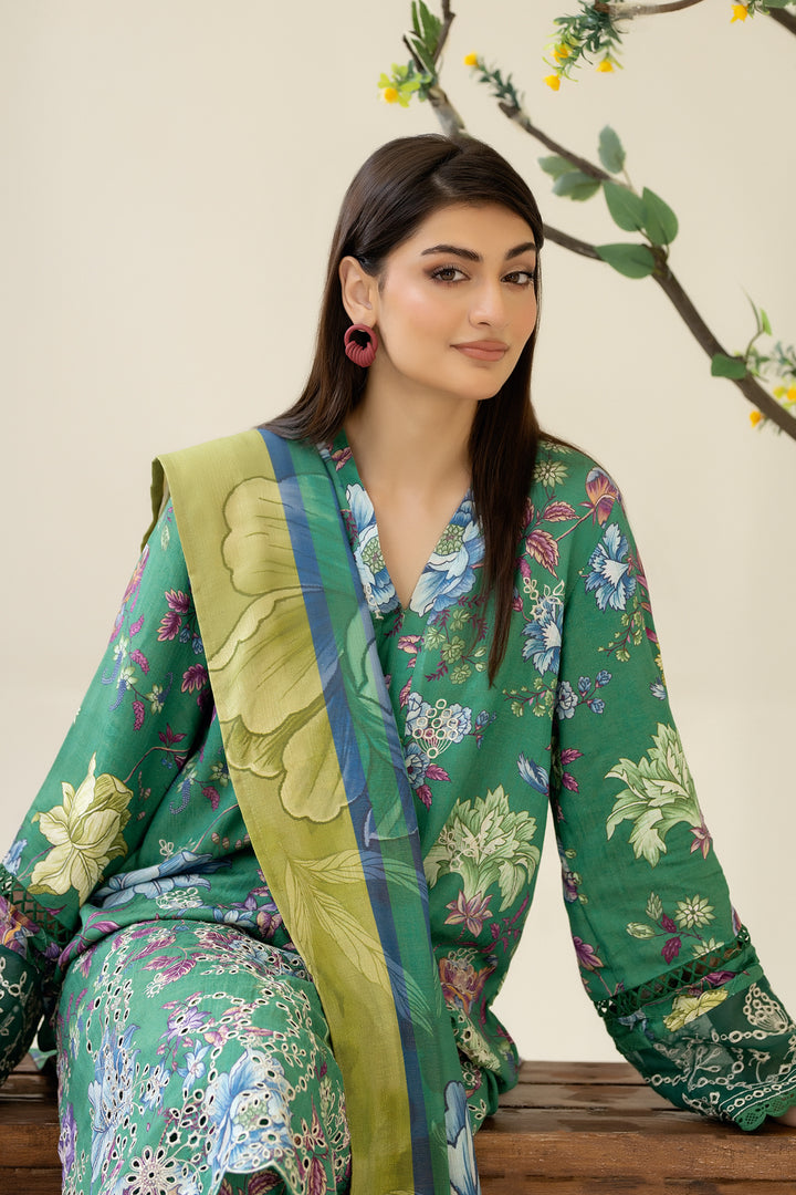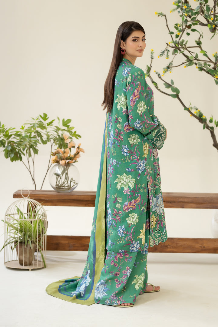 Description: EMBROIDERED+PRINTED STAPPLE JACQUARD WITH PRINTED SHAWL + PRINTED TROUSER
