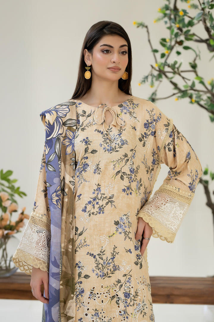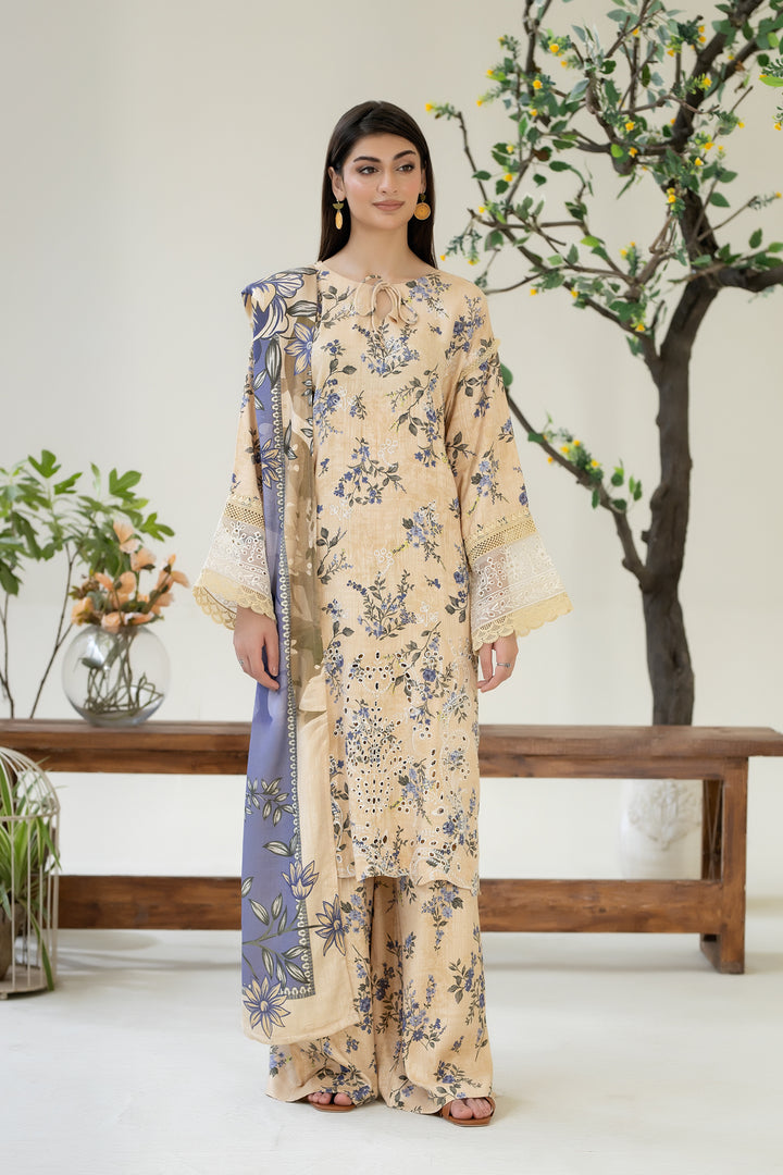 Description: EMBROIDERED+PRINTED STAPPLE JACQUARD WITH PRINTED SHAWL + PRINTED TROUSER