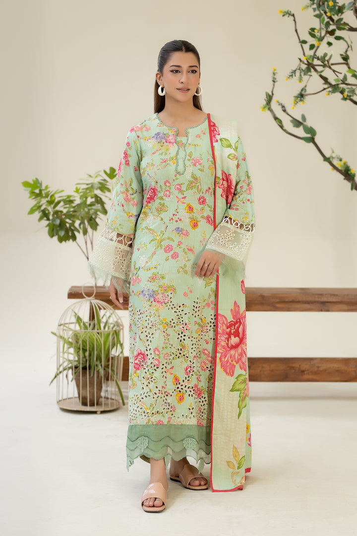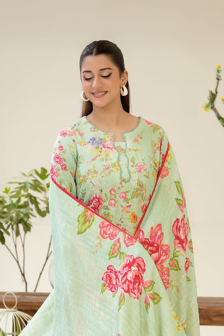 Description: EMBROIDERED+PRINTED STAPPLE JACQUARD WITH PRINTED SHAWL + PRINTED TROUSER