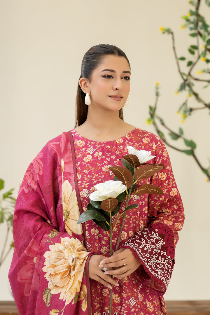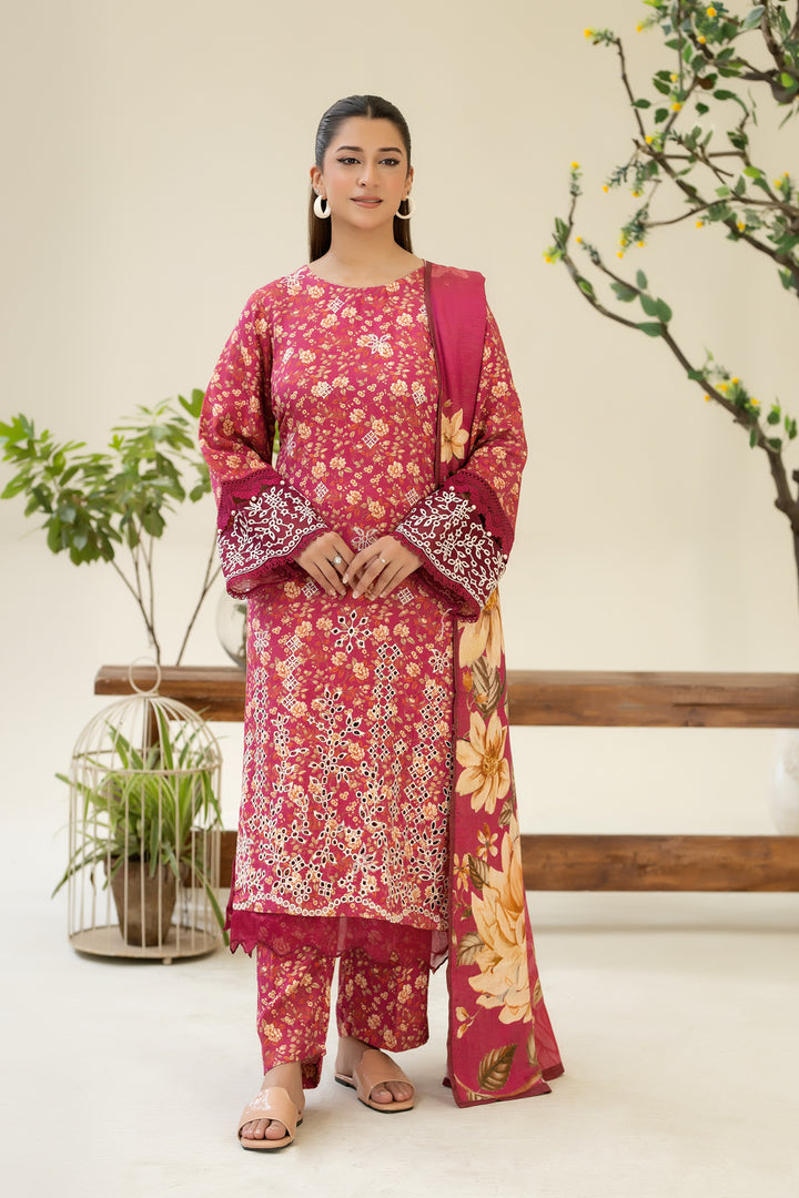 Description: EMBROIDERED+PRINTED STAPPLE JACQUARD WITH PRINTED SHAWL + PRINTED TROUSER