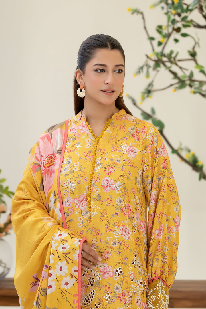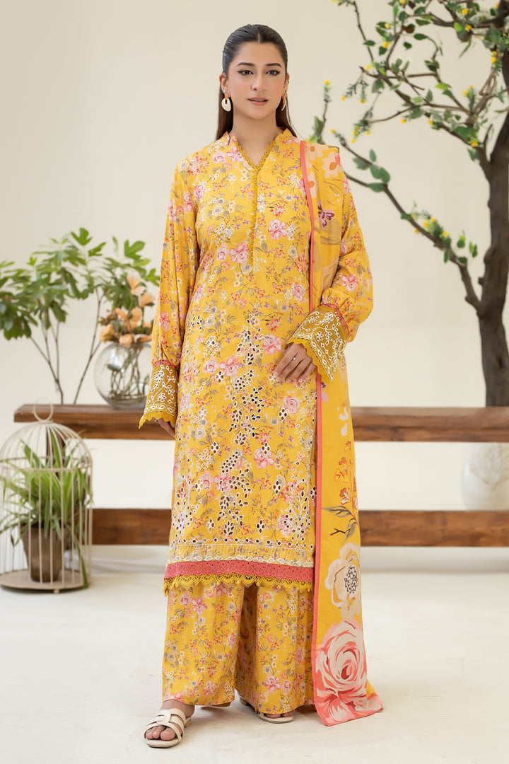 Description: EMBROIDERED+PRINTED STAPPLE JACQUARD WITH PRINTED SHAWL + PRINTED TROUSER