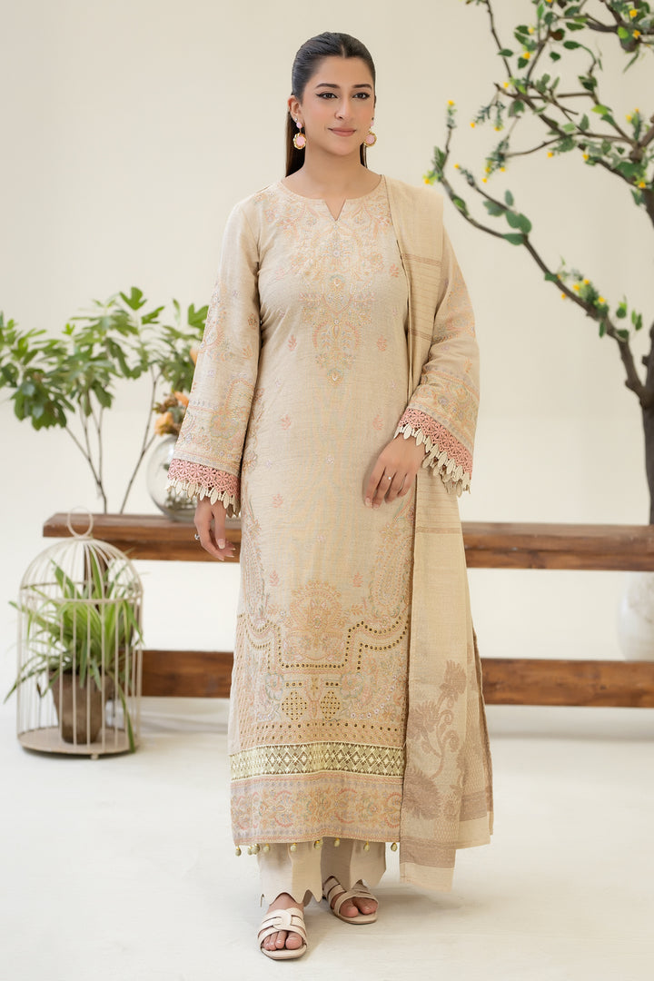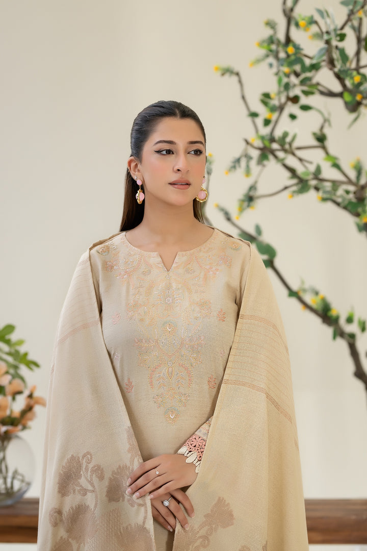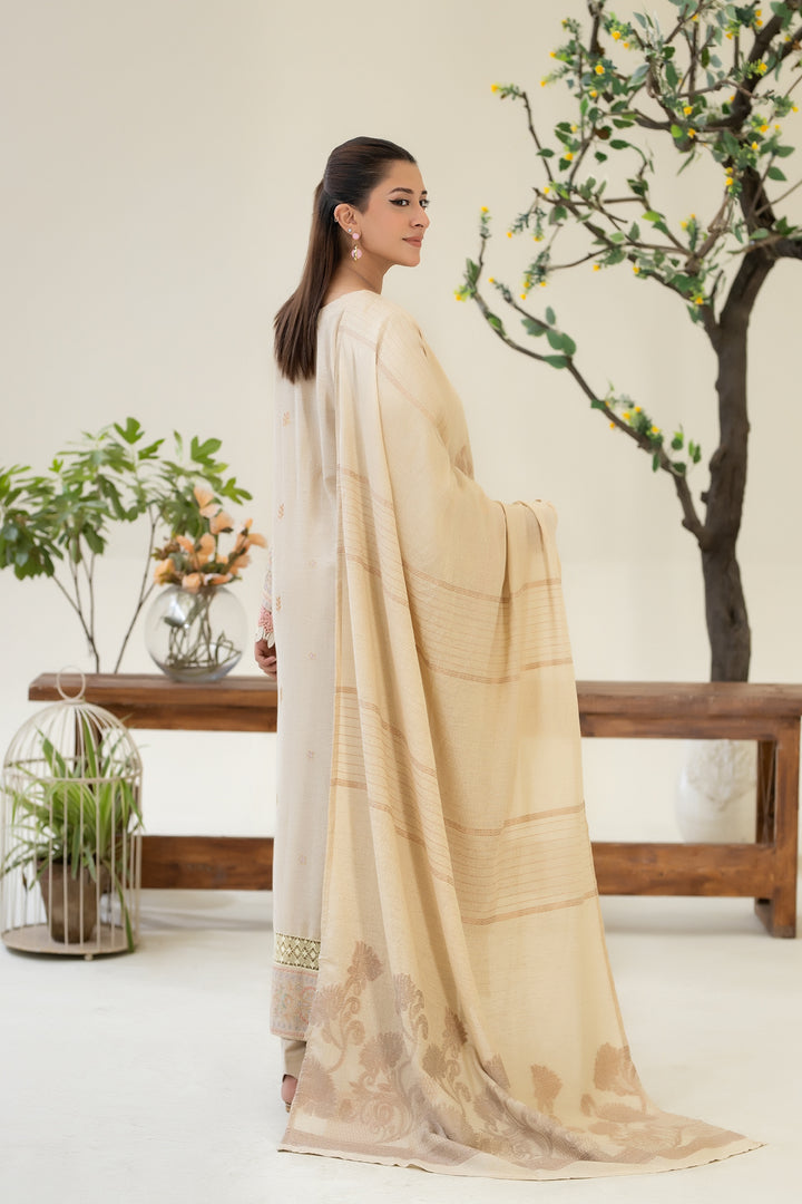 Description: EMBROIDERED KARANDI WITH JACQUARD SHAWL