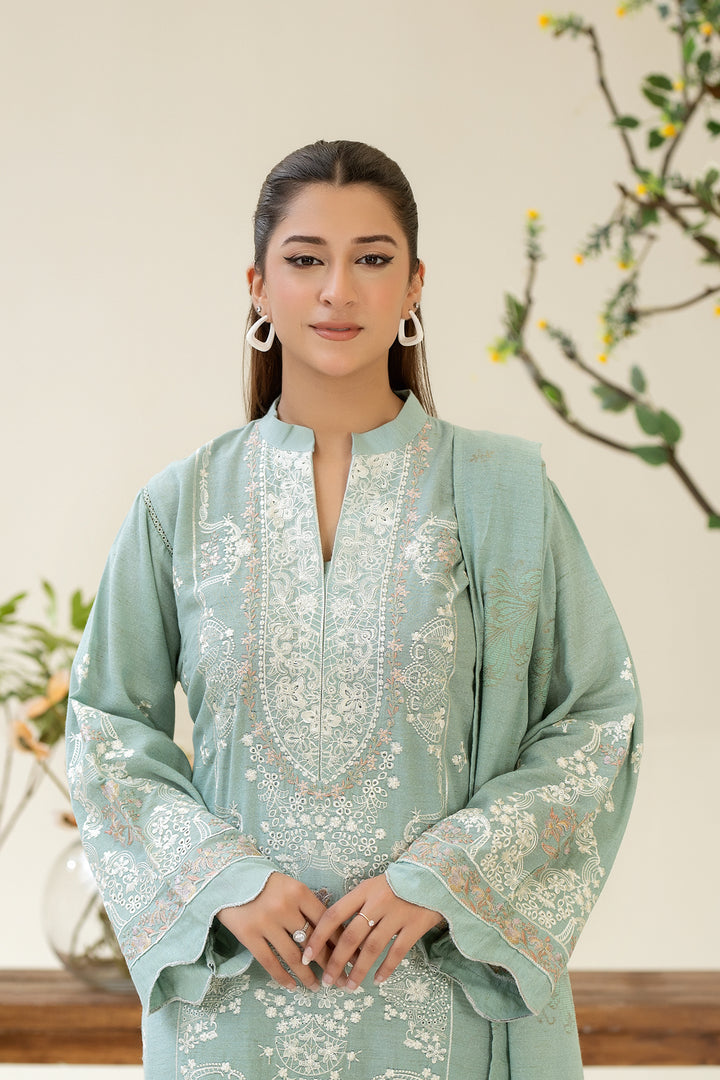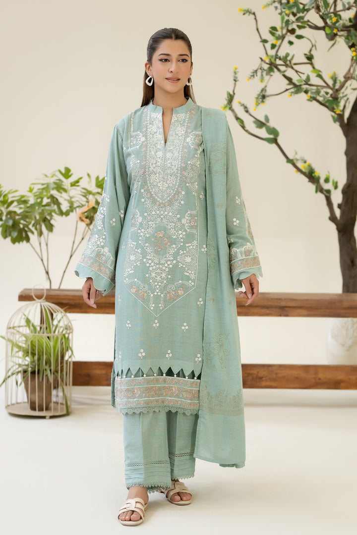 Description: EMBROIDERED KARANDI WITH JACQUARD SHAWL