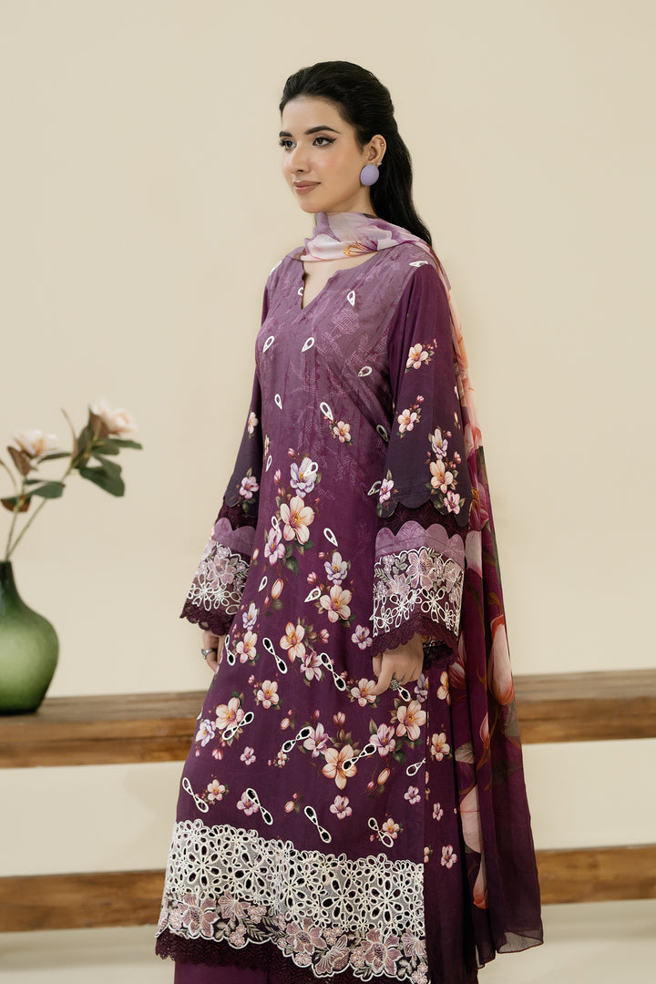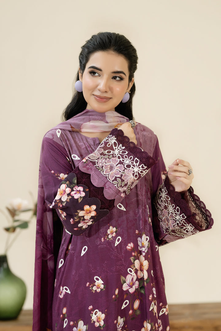 Description: Embroidered + Printed Stapple Slub With Printed Chiffon Dupatta