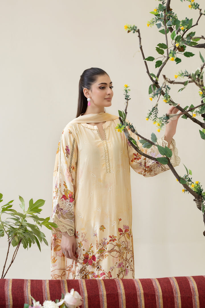 Description: Embroidered + Printed Stapple Slub With Printed Chiffon Dupatta