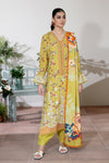 Description: Embroidered + Printed Staple Slub with Printed Shawl