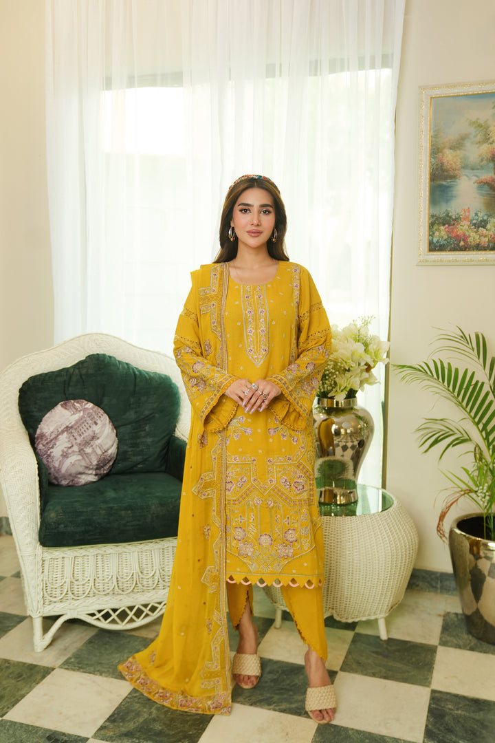 Description: Embroidered Lawn Karandi With Embroidered Chiffon Dupatta