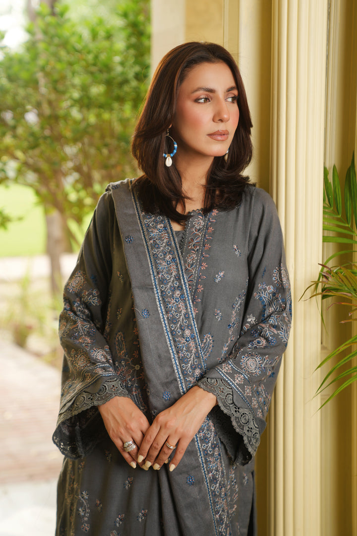 Description: Embroidered Fancy Peach Leather With Embroidered Wool Shawl