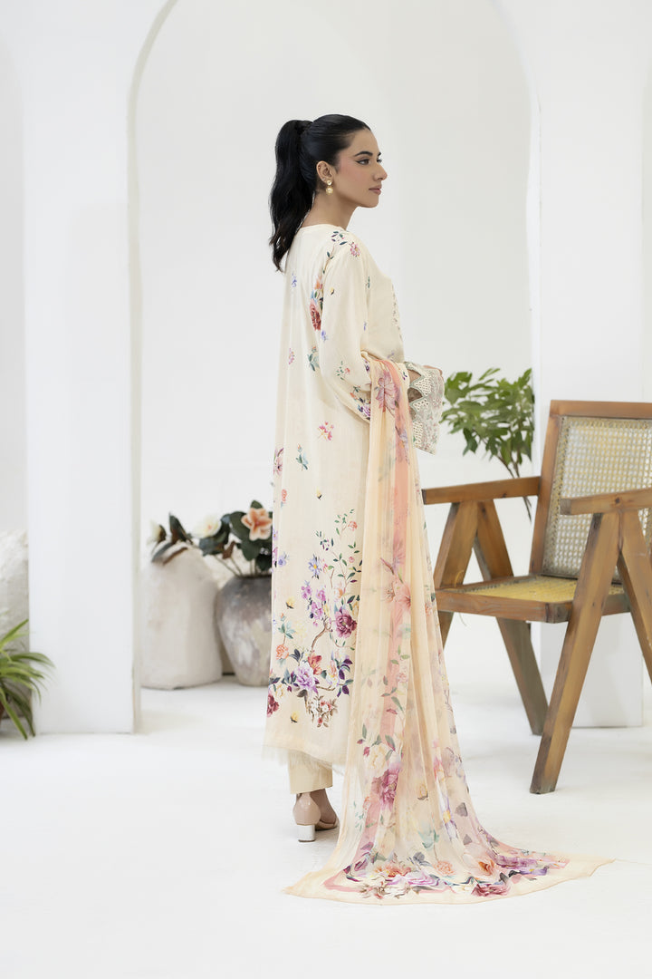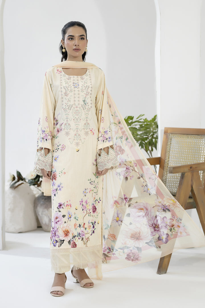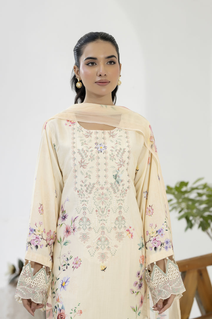 Description: EMBROIDERED+PRINTED STAPPLE SLUB WITH PRINTED CHIFFON DUPATTA
