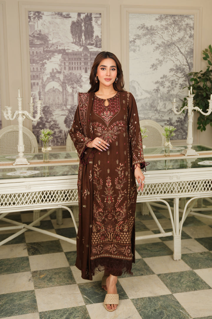 Description: Embroidered Fancy Peach Leather With Embroidered Wool Shawl