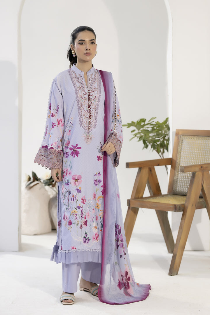 Description: EMBROIDERED+PRINTED STAPPLE SLUB WITH PRINTED CHIFFON DUPATTA