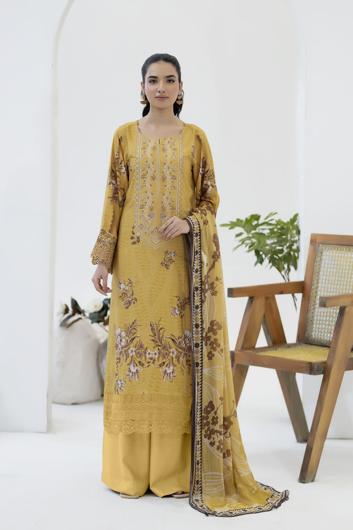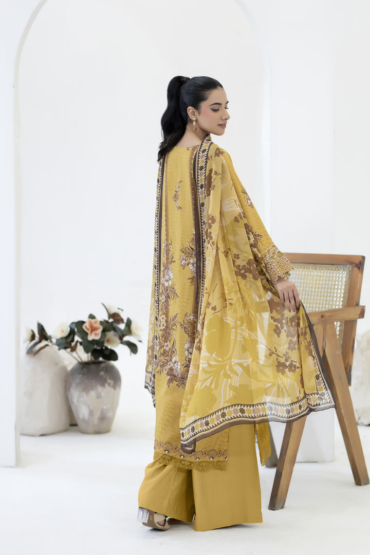 Description: EMBROIDERED+PRINTED STAPPLE SLUB WITH PRINTED CHIFFON DUPATTA