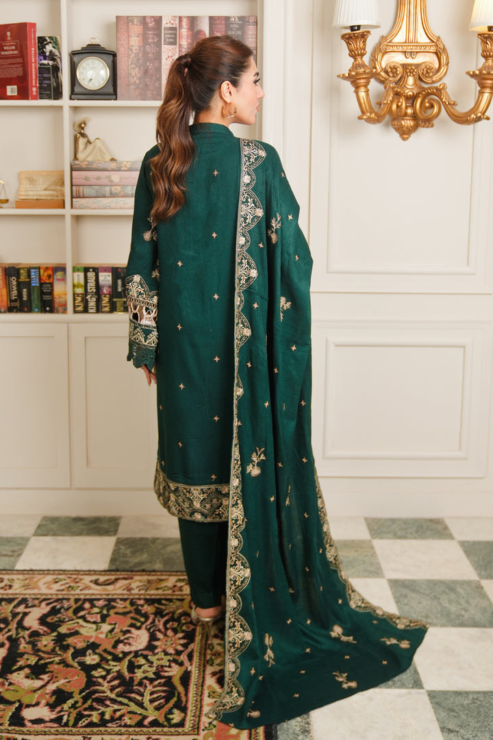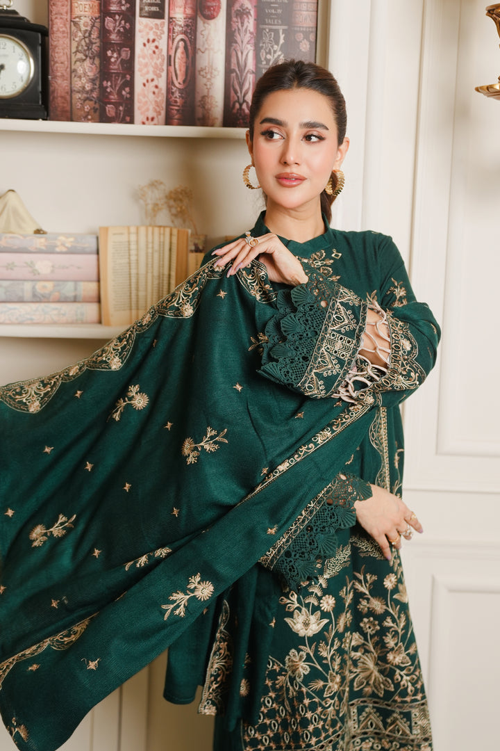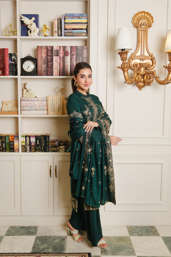 Description: Embroidered Fancy Peach Leather With Embroidered Wool Shawl