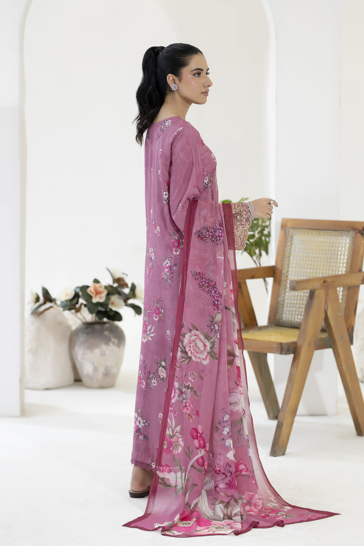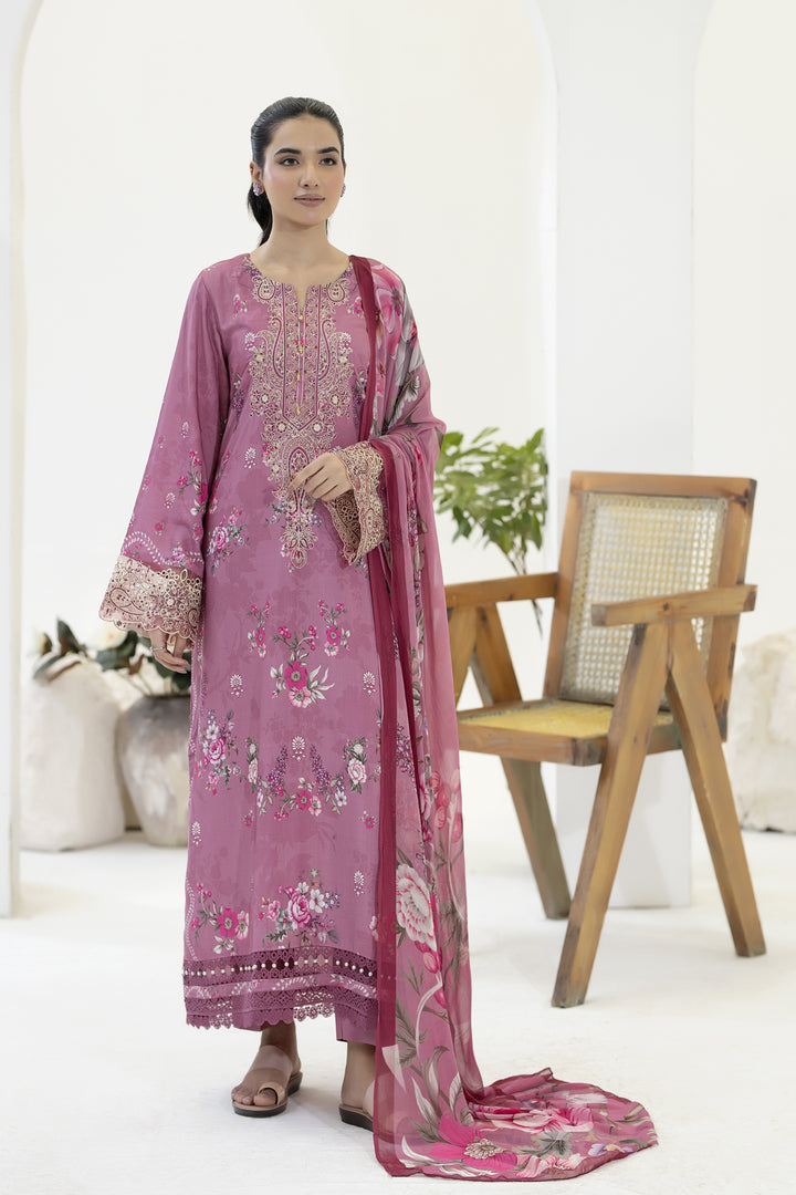 Description: EMBROIDERED+PRINTED STAPPLE SLUB WITH PRINTED CHIFFON DUPATTA