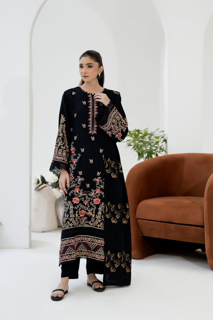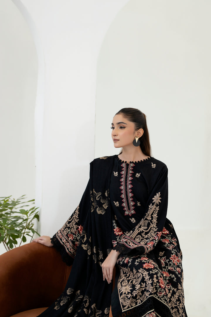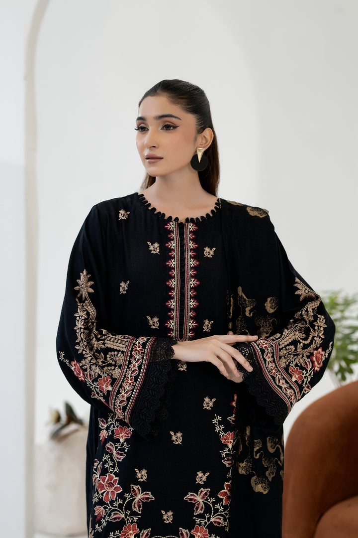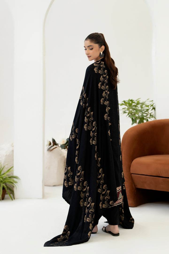 Description: Embroidered Viscose With Viscose Jacquard Shawl