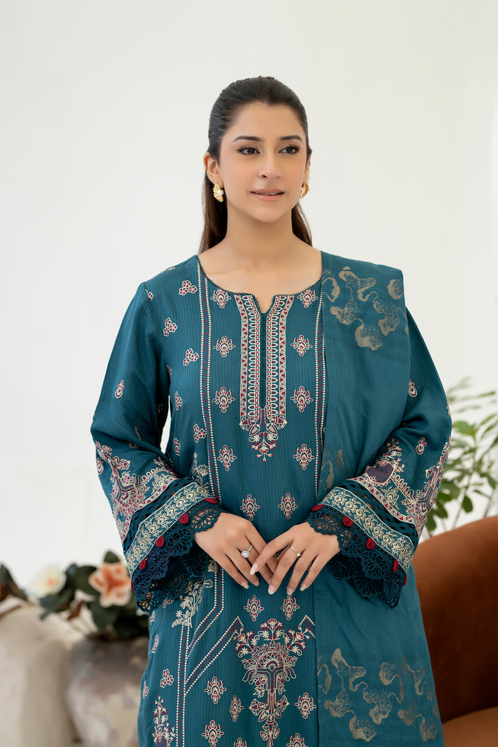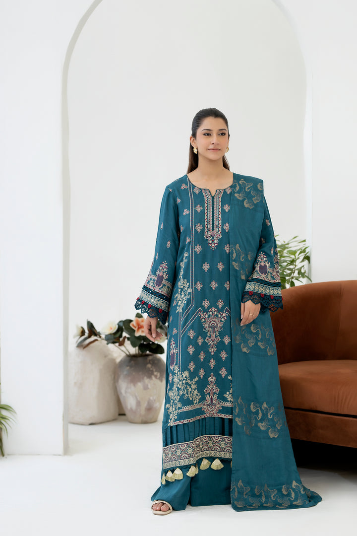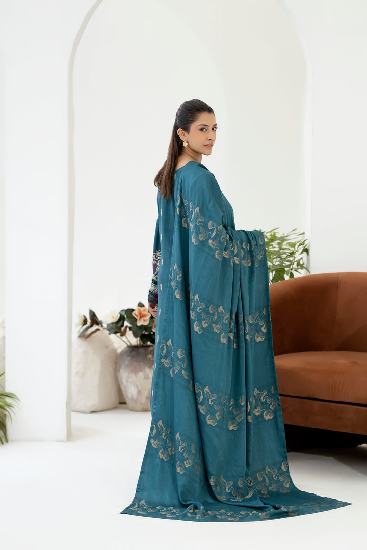 Description: Embroidered Viscose With Viscose Jacquard Shawl