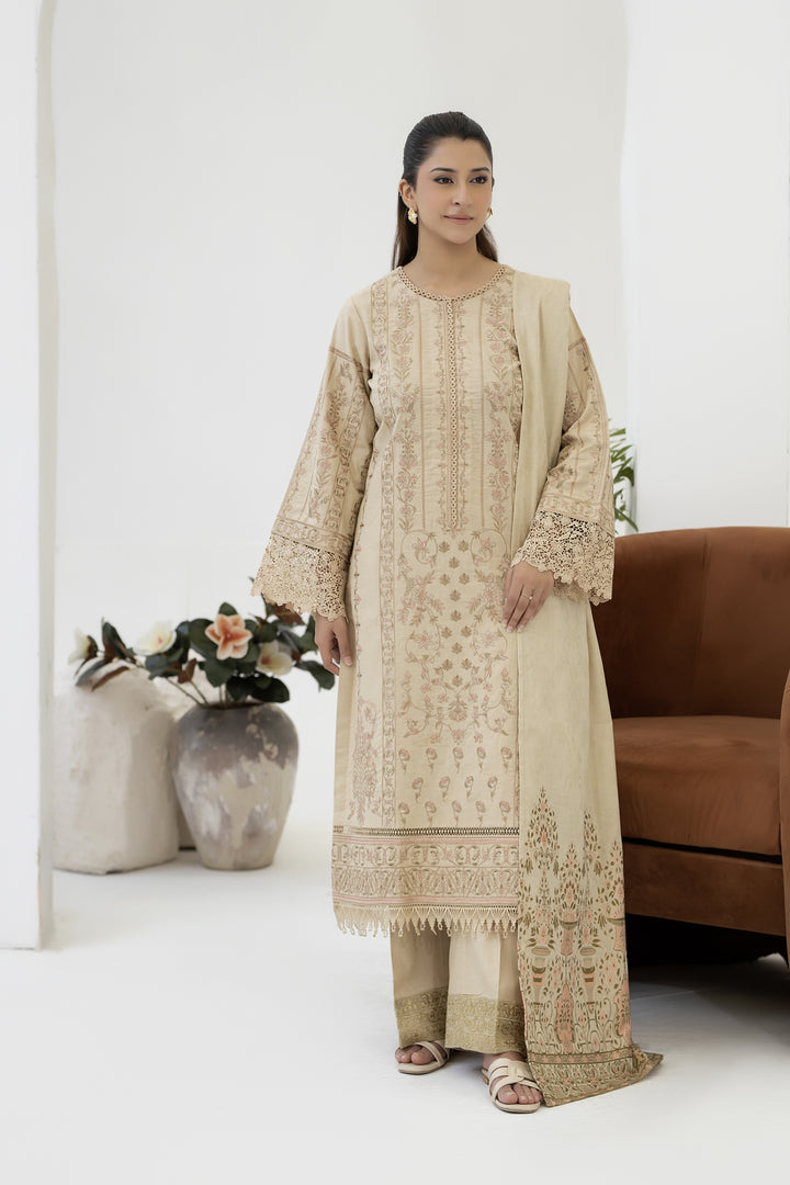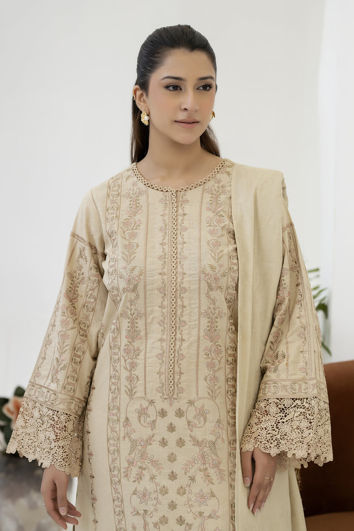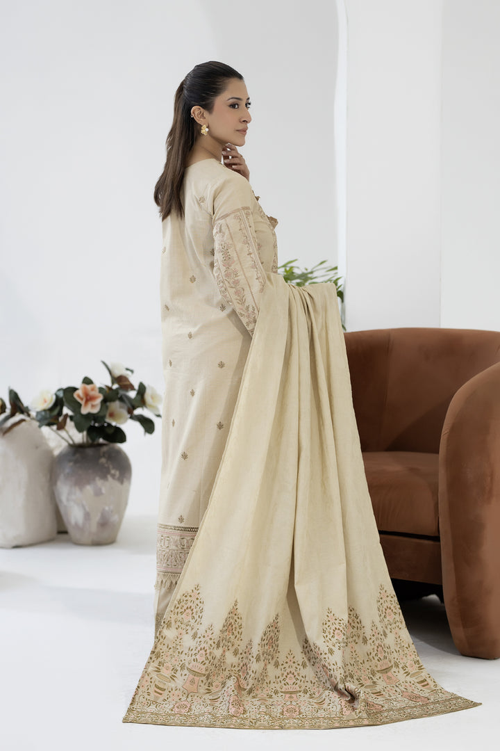 Description: Embroidered khaddar With Banarasi Jacquard Shawl