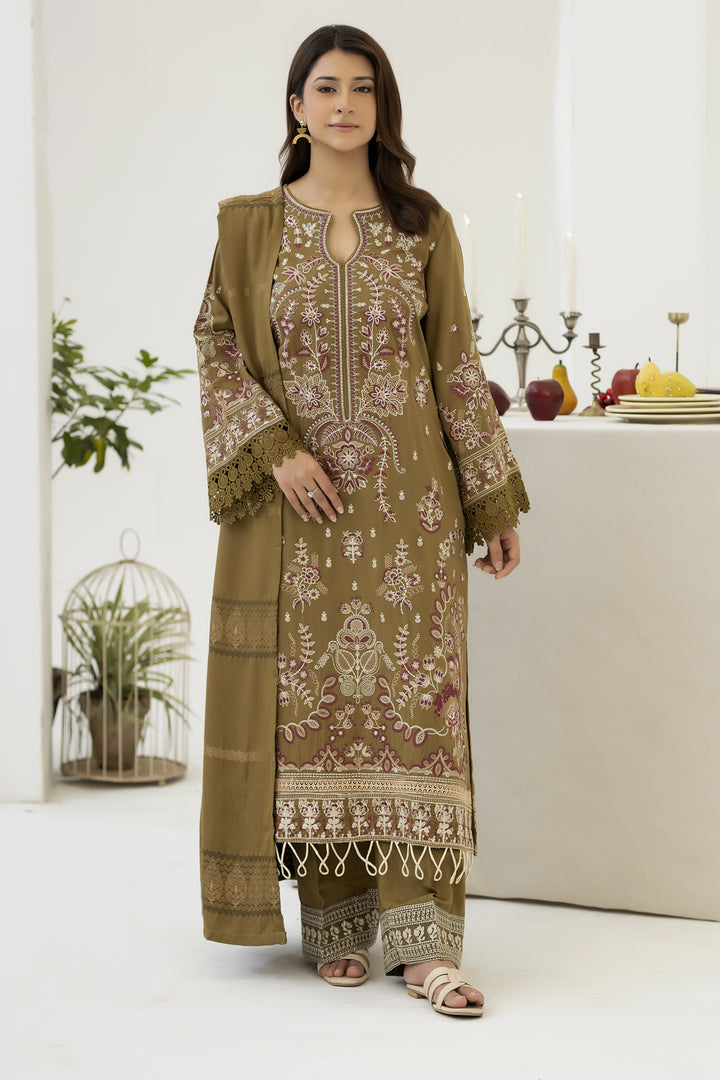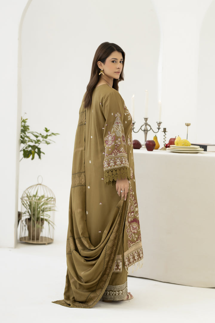 Description: Embroidered Viscose With Viscose Jacquard Shawl