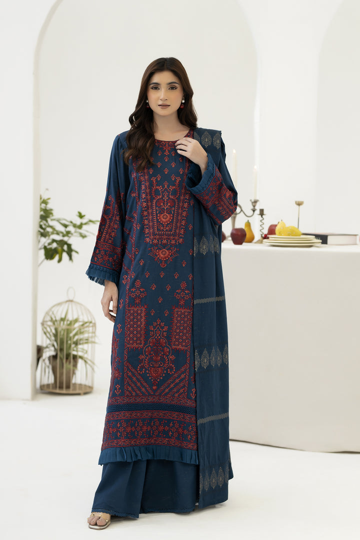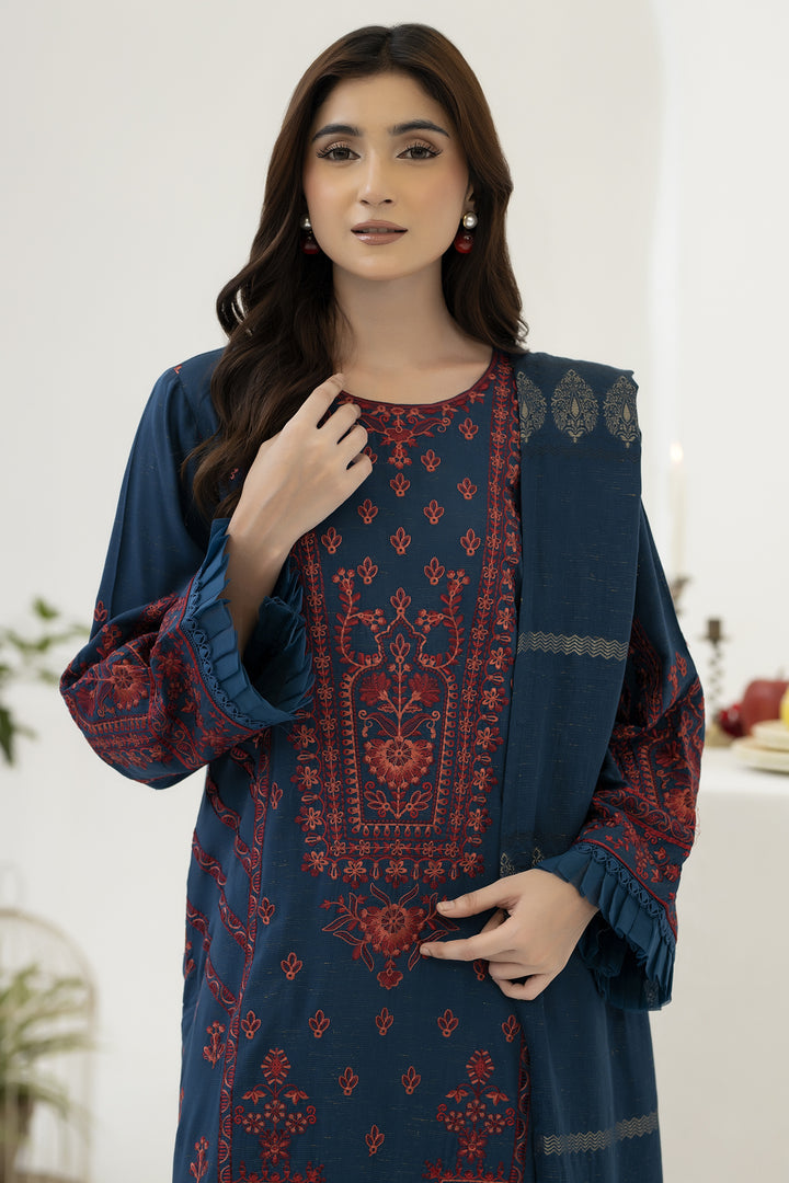 Description: Embroidered Viscose With Viscose Jacquard Shawl