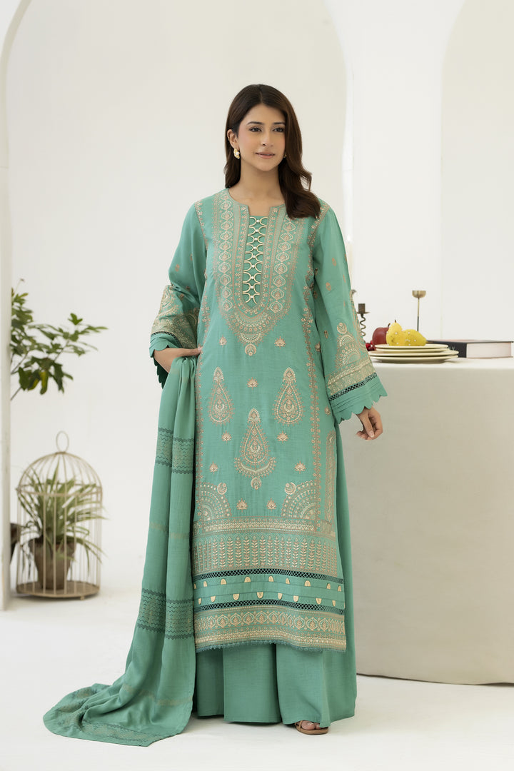 Description: Embroidered Viscose With Viscose Jacquard Shawl