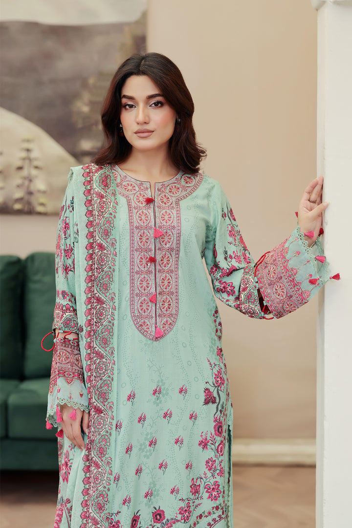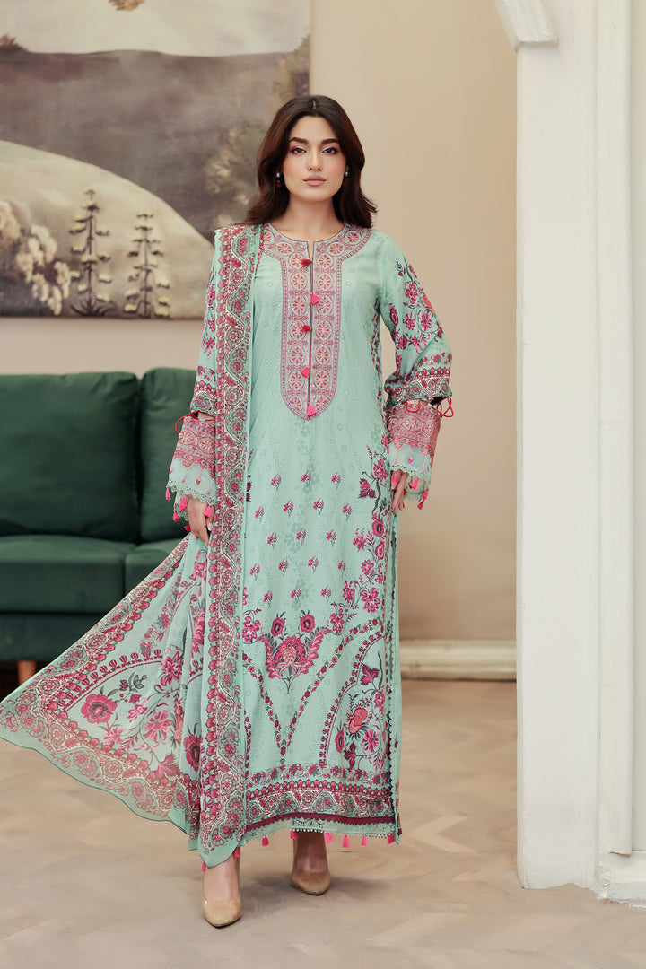 Description: Embroidered + Printed Stapple Slub With Printed Chiffon Dupatta