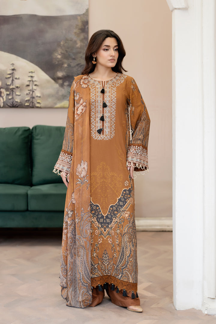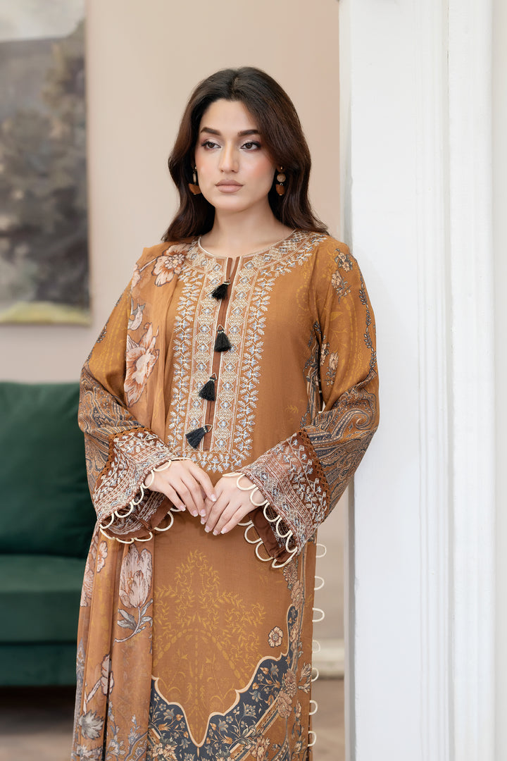 Description: Embroidered + Printed Stapple Slub With Printed Chiffon Dupatta