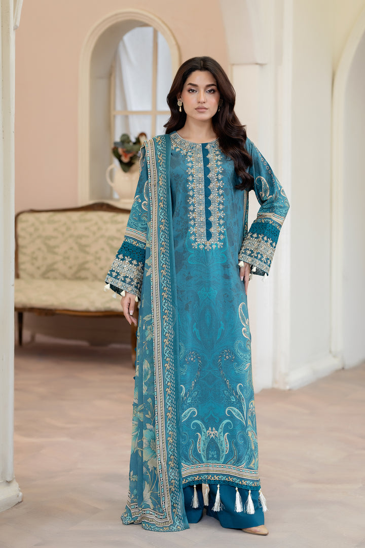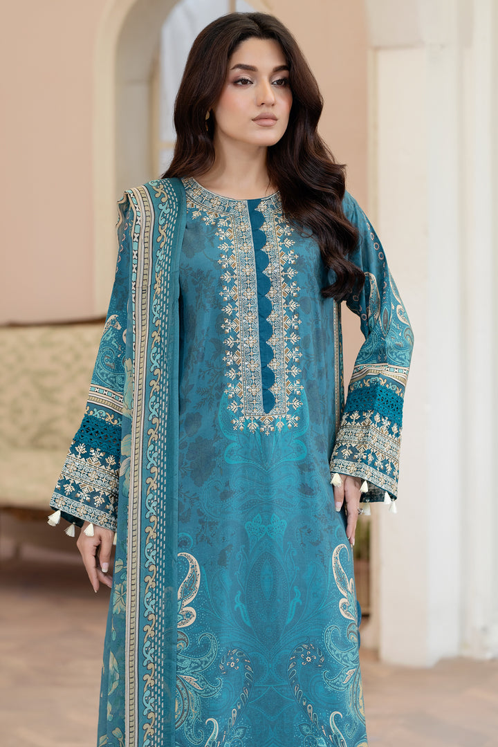 Description: Embroidered + Printed Stapple Slub With Printed Chiffon Dupatta