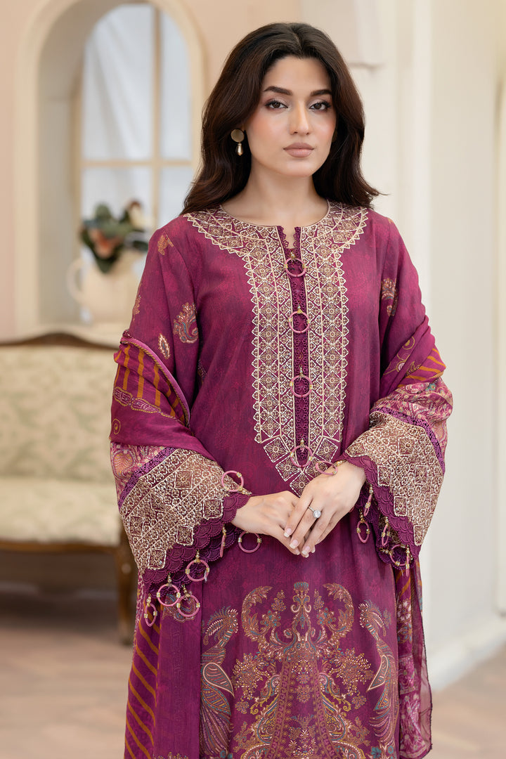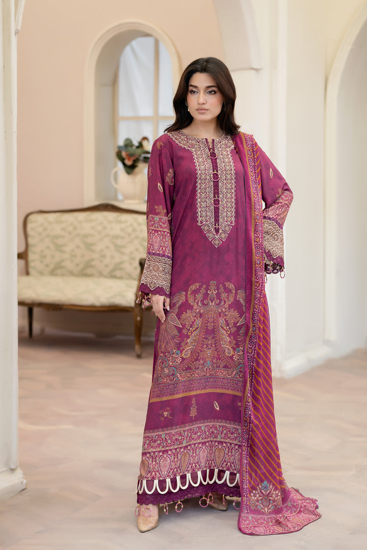 Description: Embroidered + Printed Stapple Slub With Printed Chiffon Dupatta