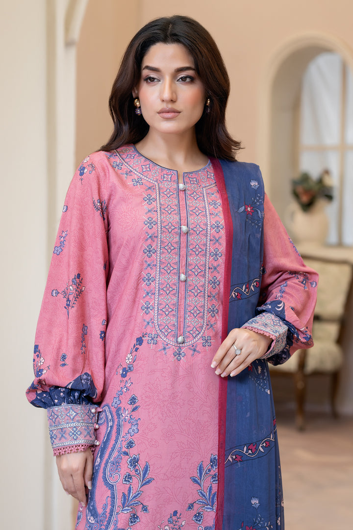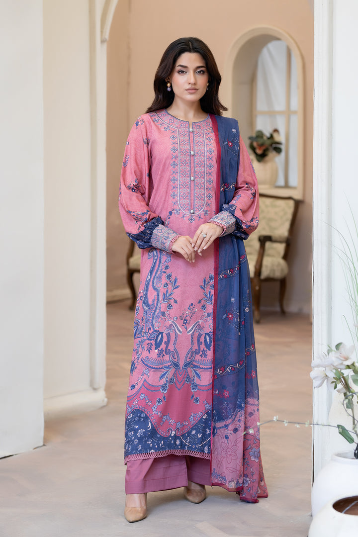 Description: Embroidered + Printed Stapple Slub With Printed Chiffon Dupatta