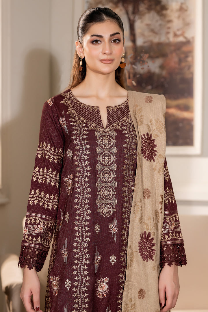 Description: Embroidered Fancy Peach Leather With Exclusive Velvet Jacquard Zari Peach Shawl