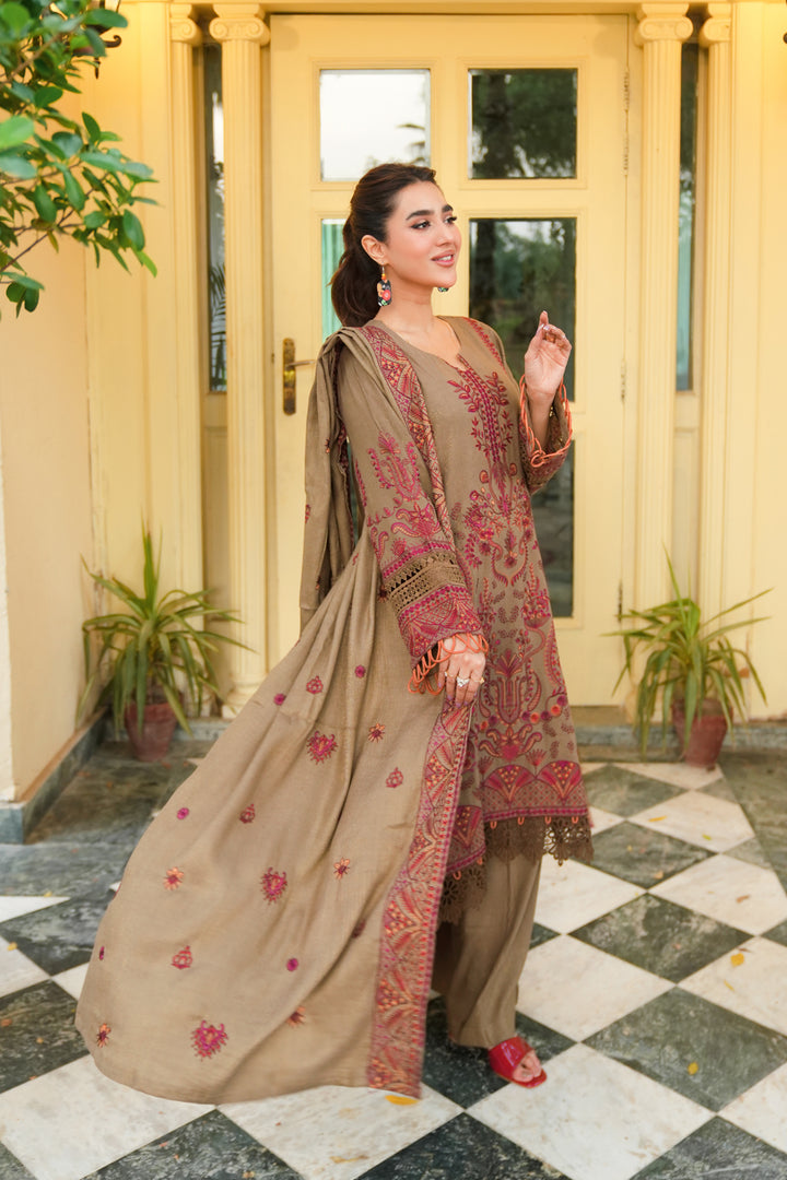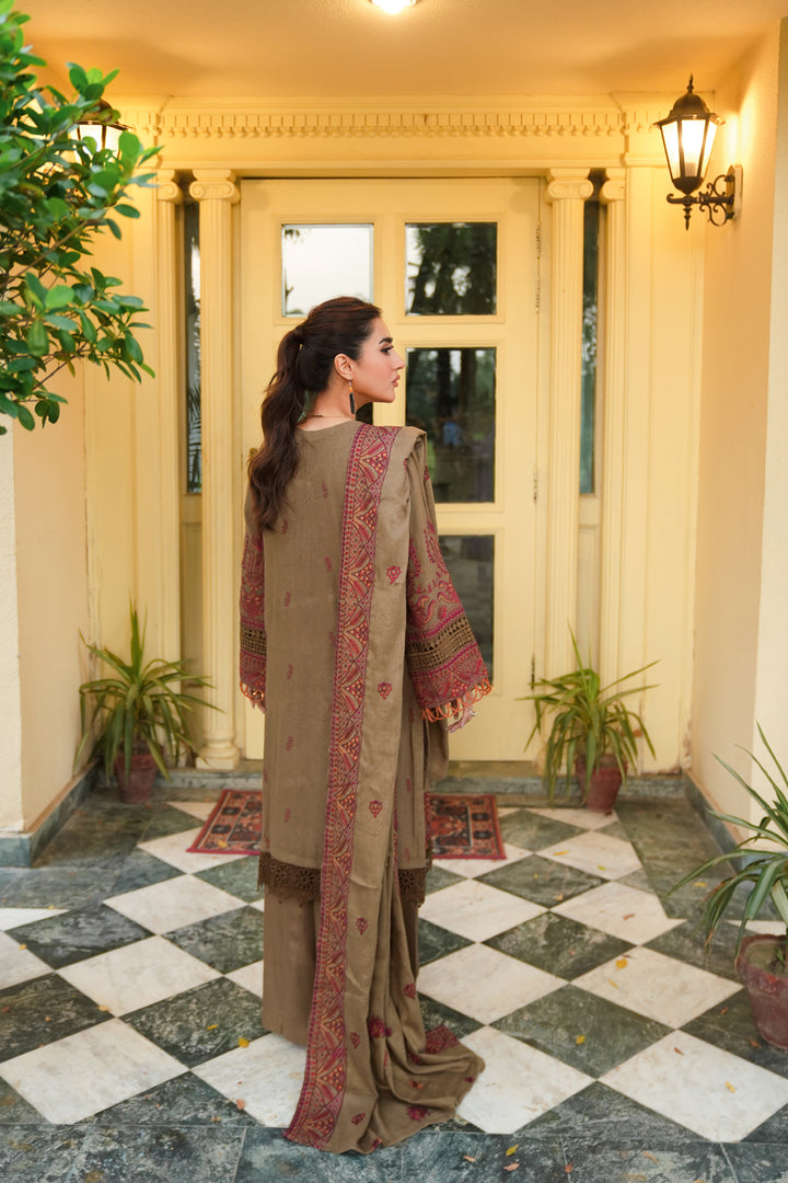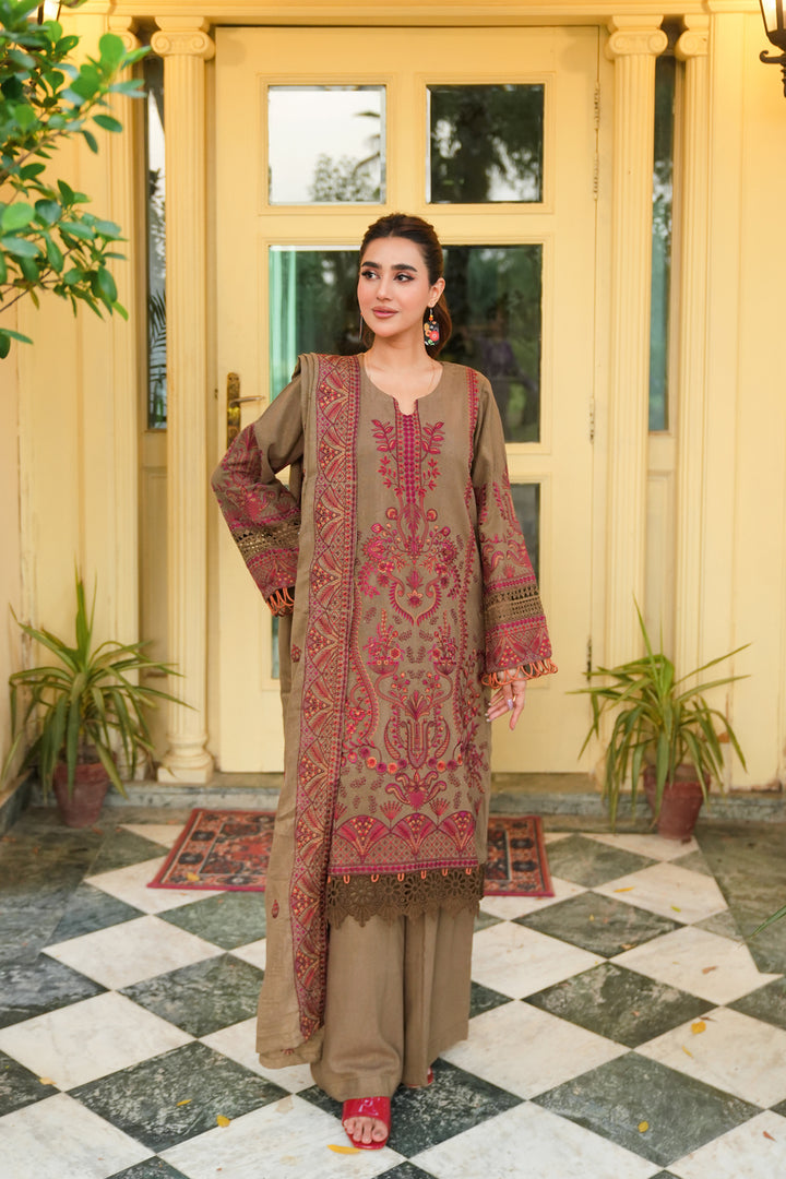 Description: Embroidered Fancy Peach Leather With Embroidered Wool Shawl